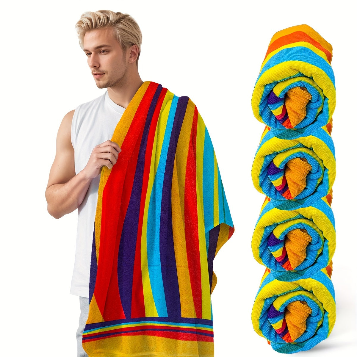 Tropical Stripe Quick-Dry Beach Towel Ultra-Soft Absorbent for Pool Bath