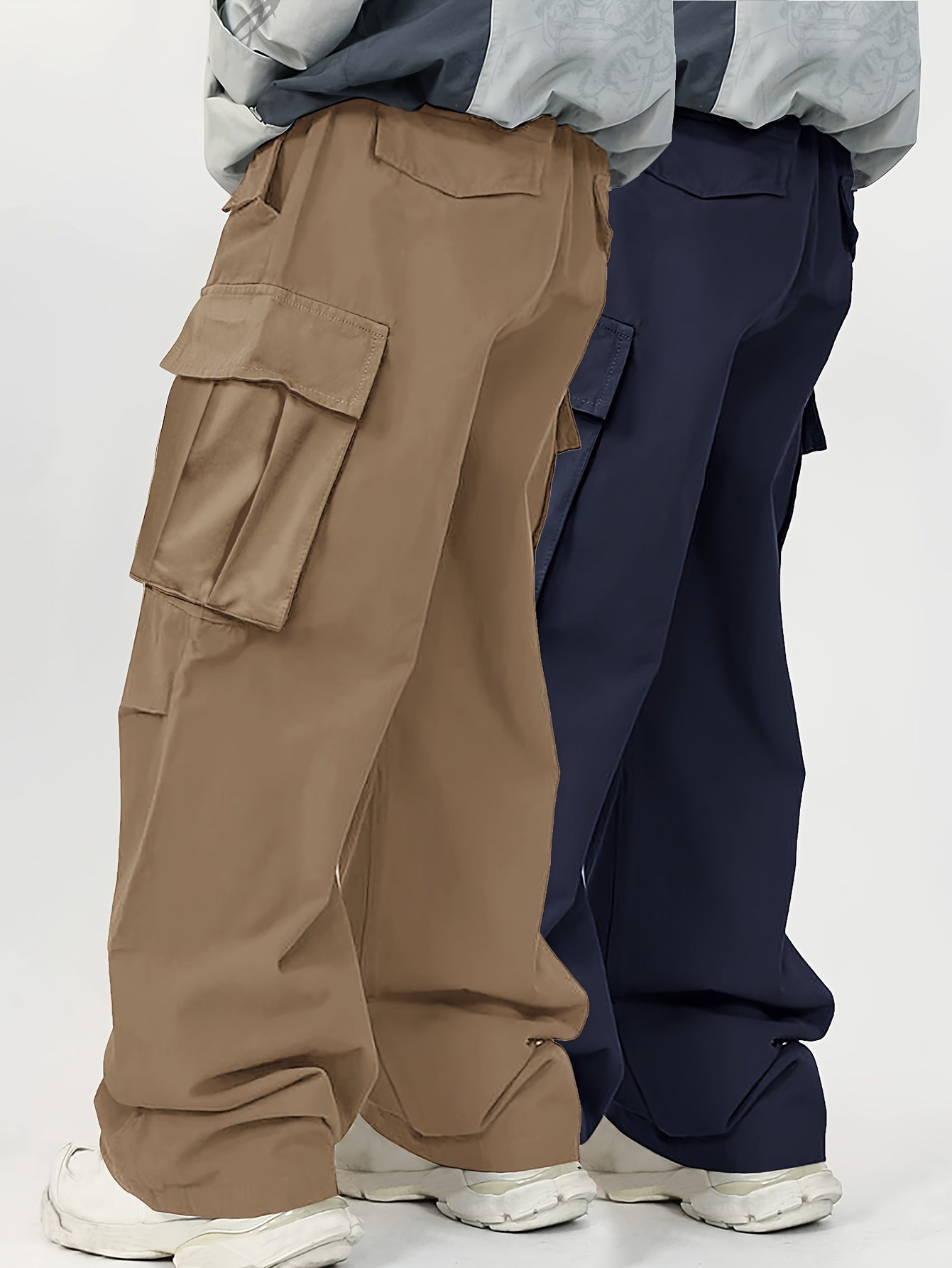 Men's Cargo Pants Loose Fit Solid Color Polyester with Flap Pockets