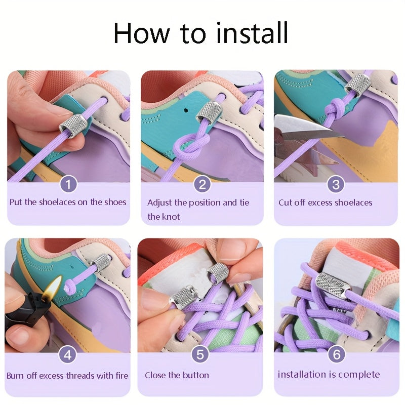 Unisex Elastic No-Tie Shoelaces Round Tapered Durable Acetate Cord