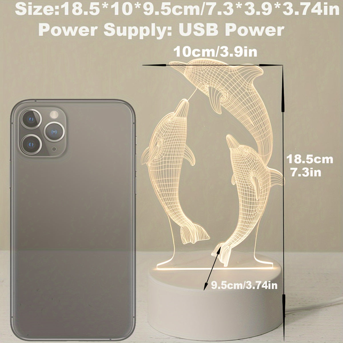 USB 3D Glowing Dolphin Night Light Ocean Animal Table Lamp for Home Decor and Gifts