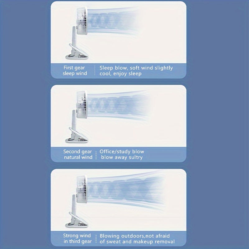 USB Clip Fan with 3-Speed Adjustable Portable Rechargeable Battery Powered