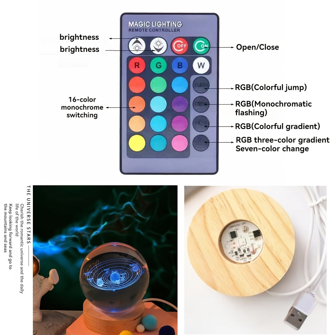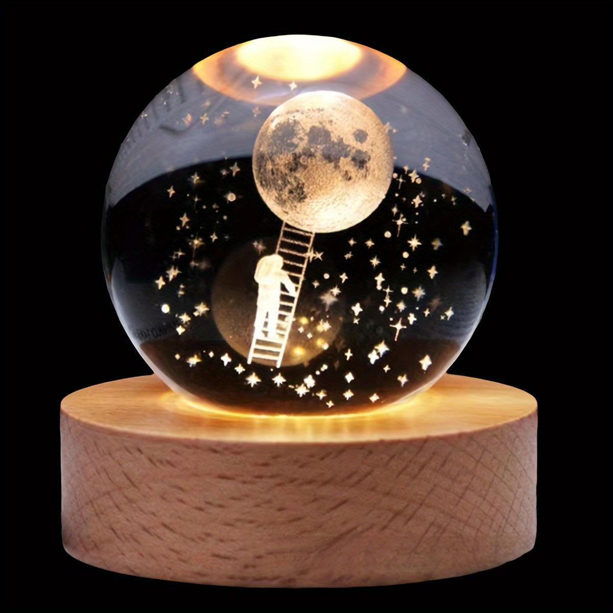 Crystal Ball Night Light with Wooden Base LED Tabletop Lamp for Bedroom Energy Efficient Uplight