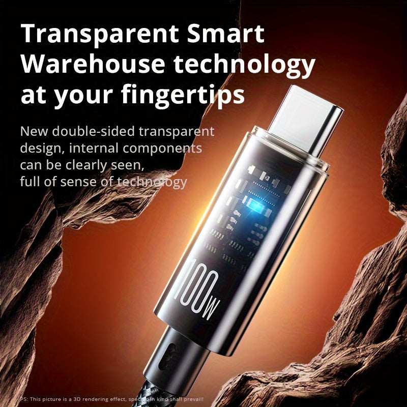USB Type-C Fast Charging Cable 100W 6A Flat PVC Glossy Data Transfer