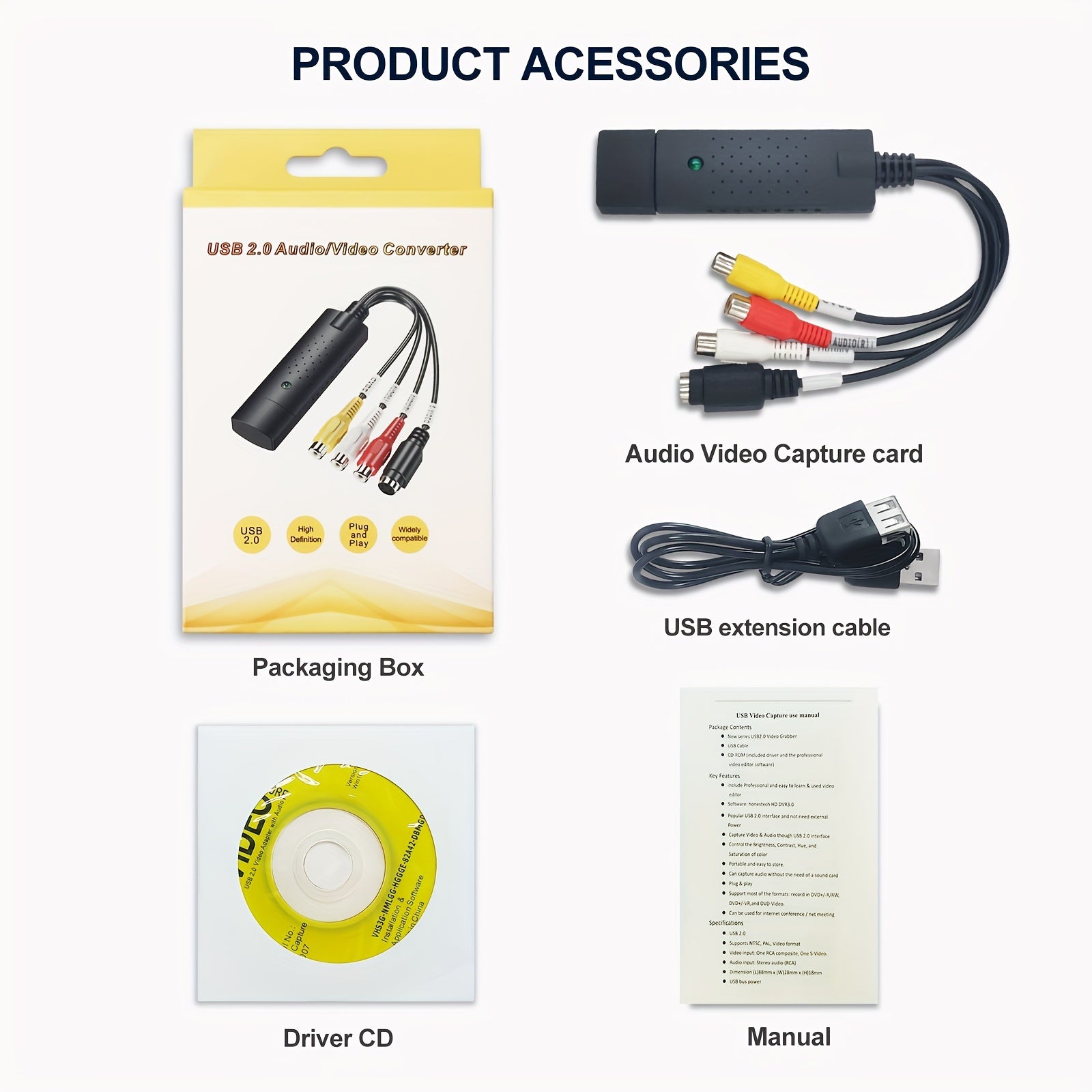 USB Video Capture Card RCA to HD 720P for VHS VCR Hi8 DV Tapes Compatible with PC Mac