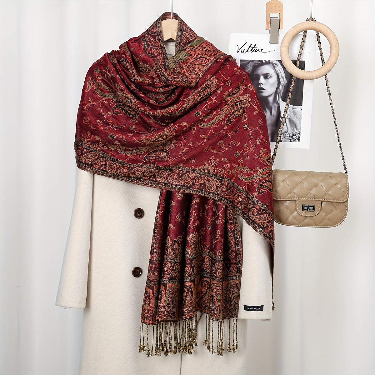 Vintage Soft Cozy Scarf Women Boho Paisley Jacquard Tassel Blanket Wrap