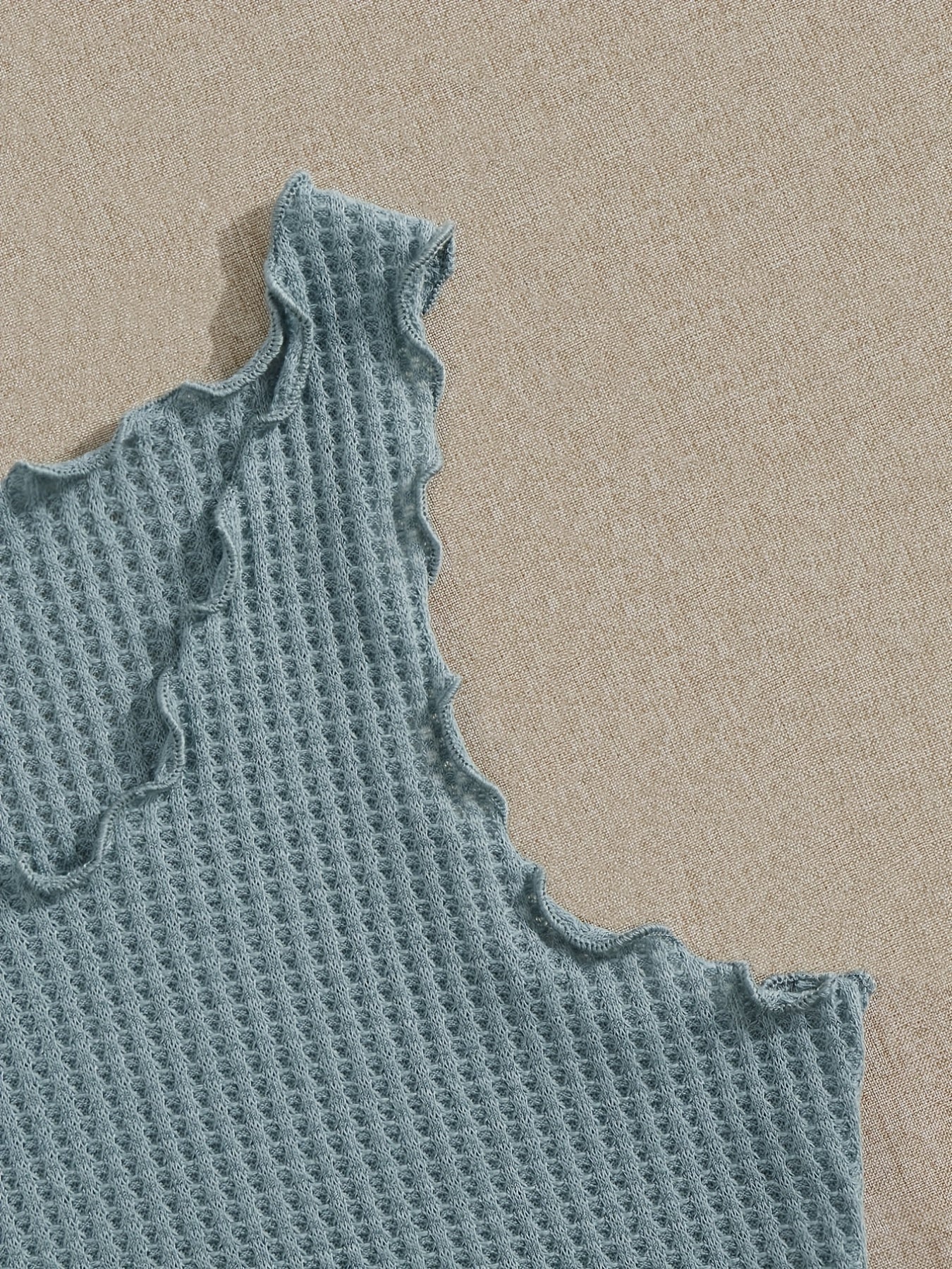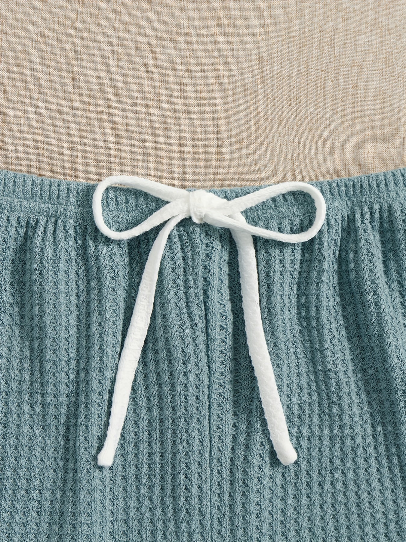Women's Waffle Pajama Set Tank Top and Shorts Solid Color Micro Elasticity Sleepwear