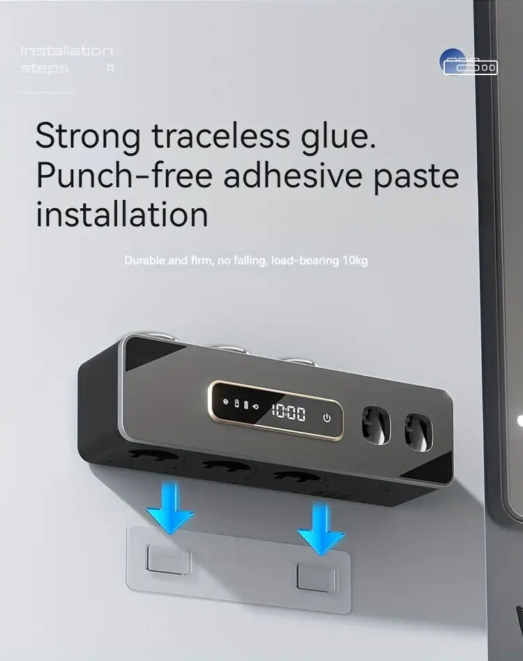 Wall-Mounted Touchless Toothbrush Holder with Drying Rack Rechargeable Lithium Battery