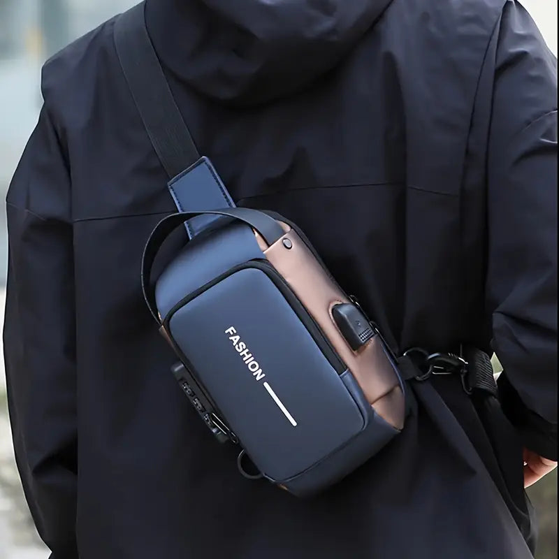 Men's Waterproof Oxford Crossbody Bag with Phone Pocket for Daily Commute and Motorcycle Use