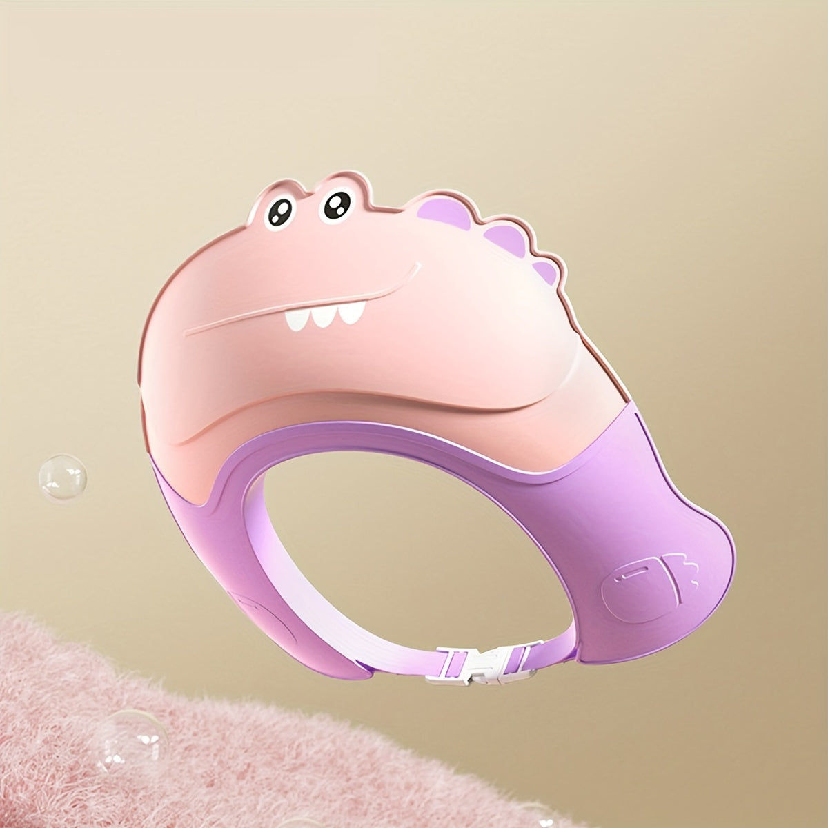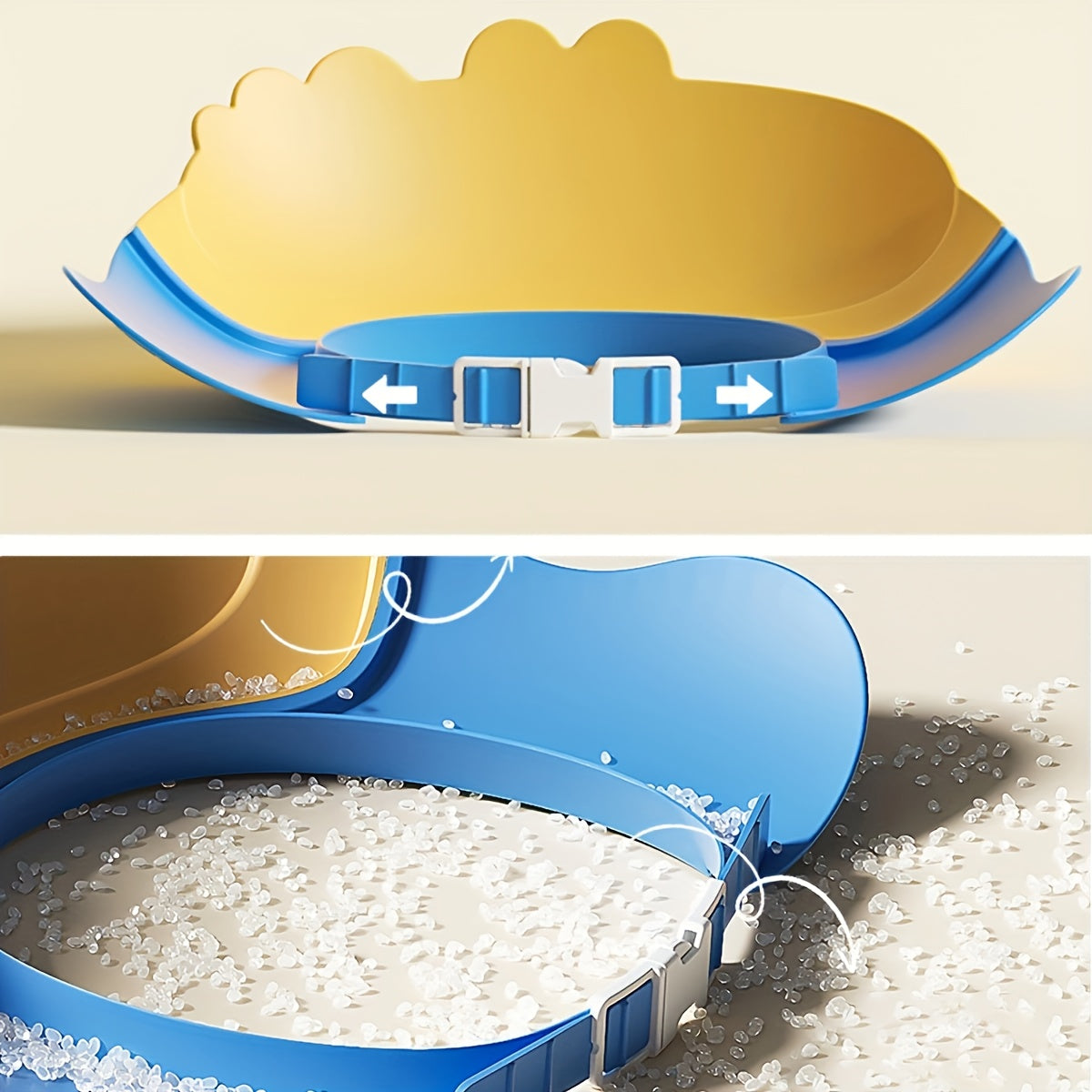 Kids Waterproof Shower Cap with Dinosaur Design Ear Protection Adjustable Fit Blue and Yellow