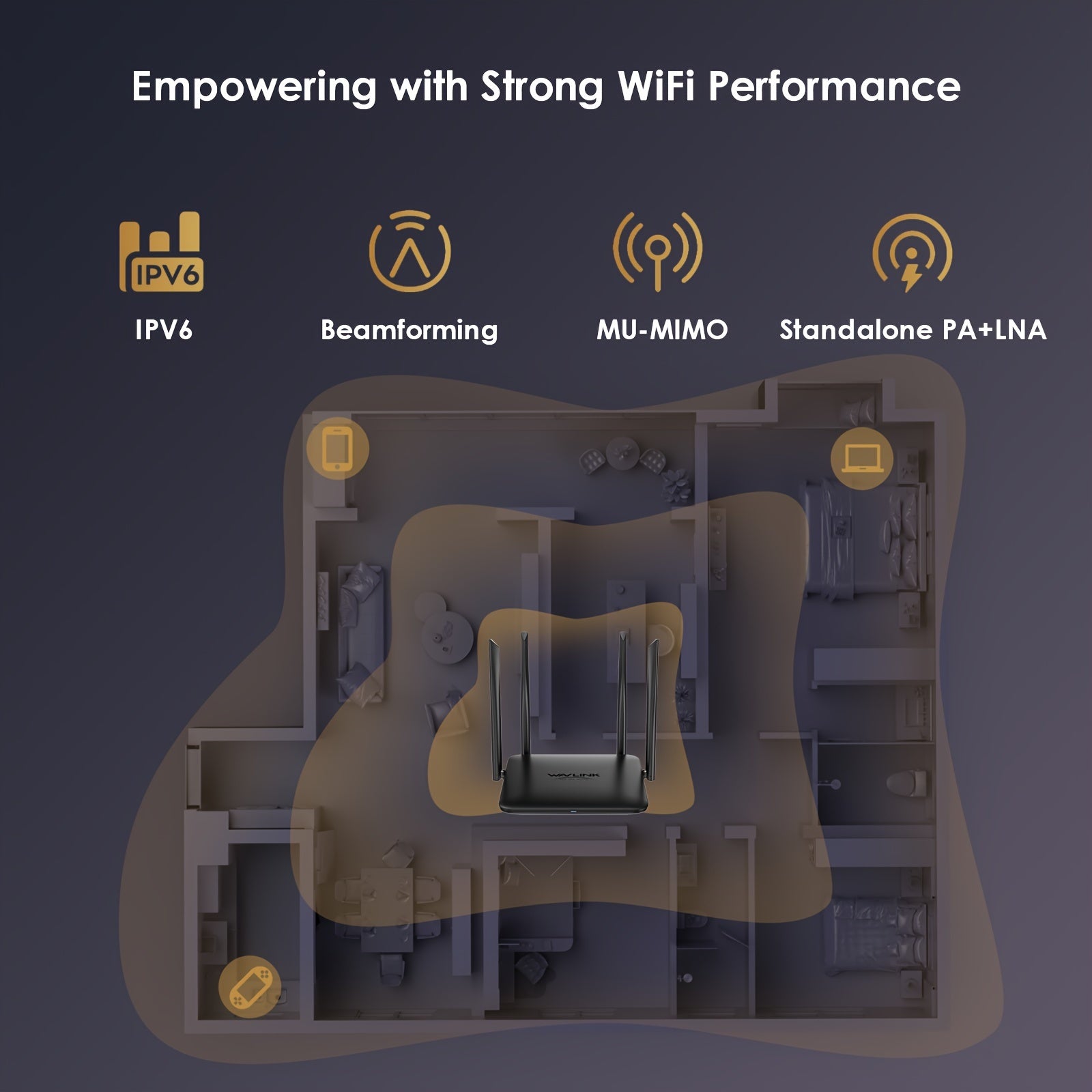 AC1200 Dual Band Wireless Router with Gigabit Ethernet Ports for Home and Gaming