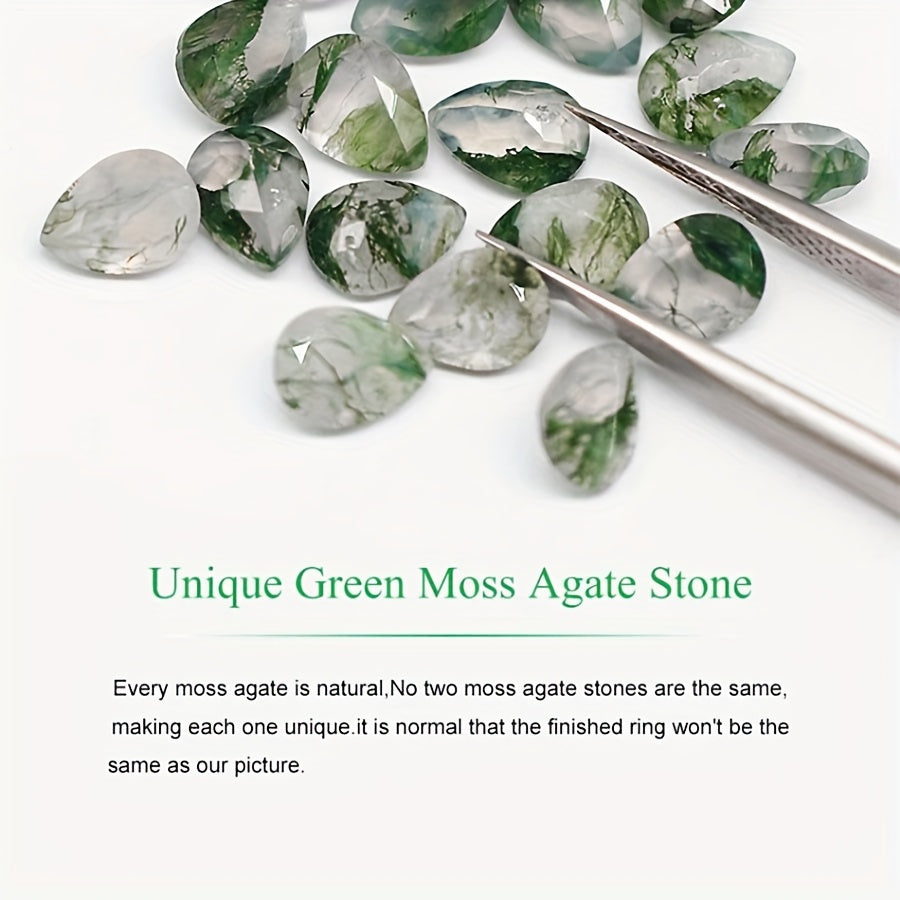 Sterling Silver Moss Agate Ring Boho Geometric Irregular Shape 7.5ct Vintage Wedding