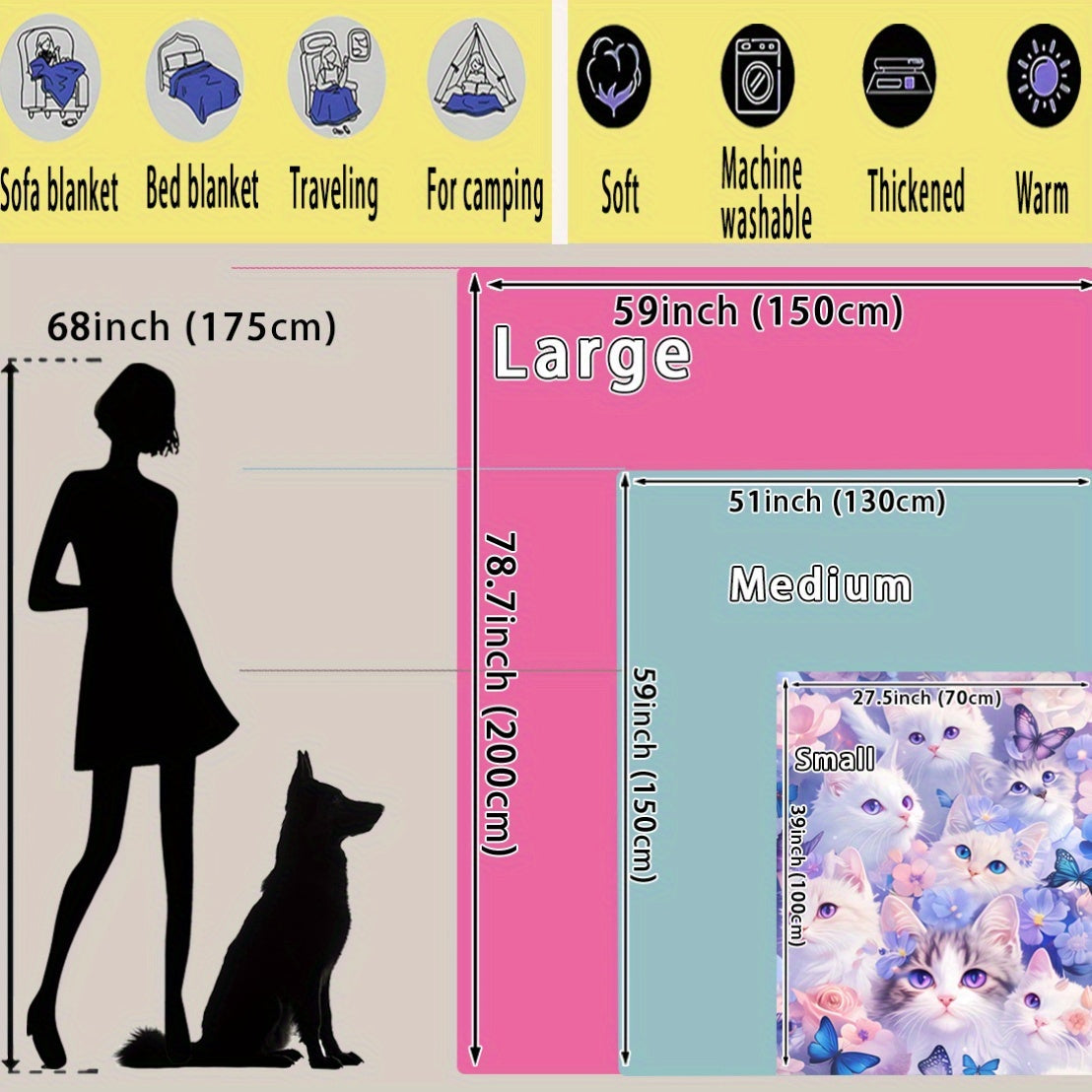 Feline Flannel Fleece Blanket with Cat Flower Butterfly Design Multi-Use Throw for Naptime Camping Travel Office Home