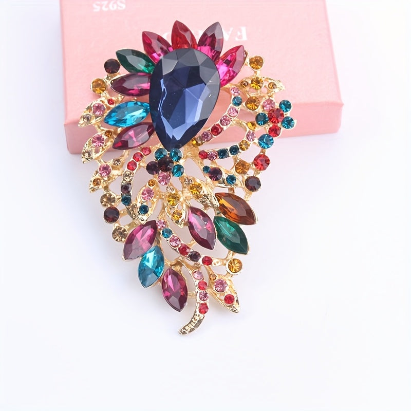 Women's Elegant Water Drop Rainbow Crystal Moon Brooch Jewelry