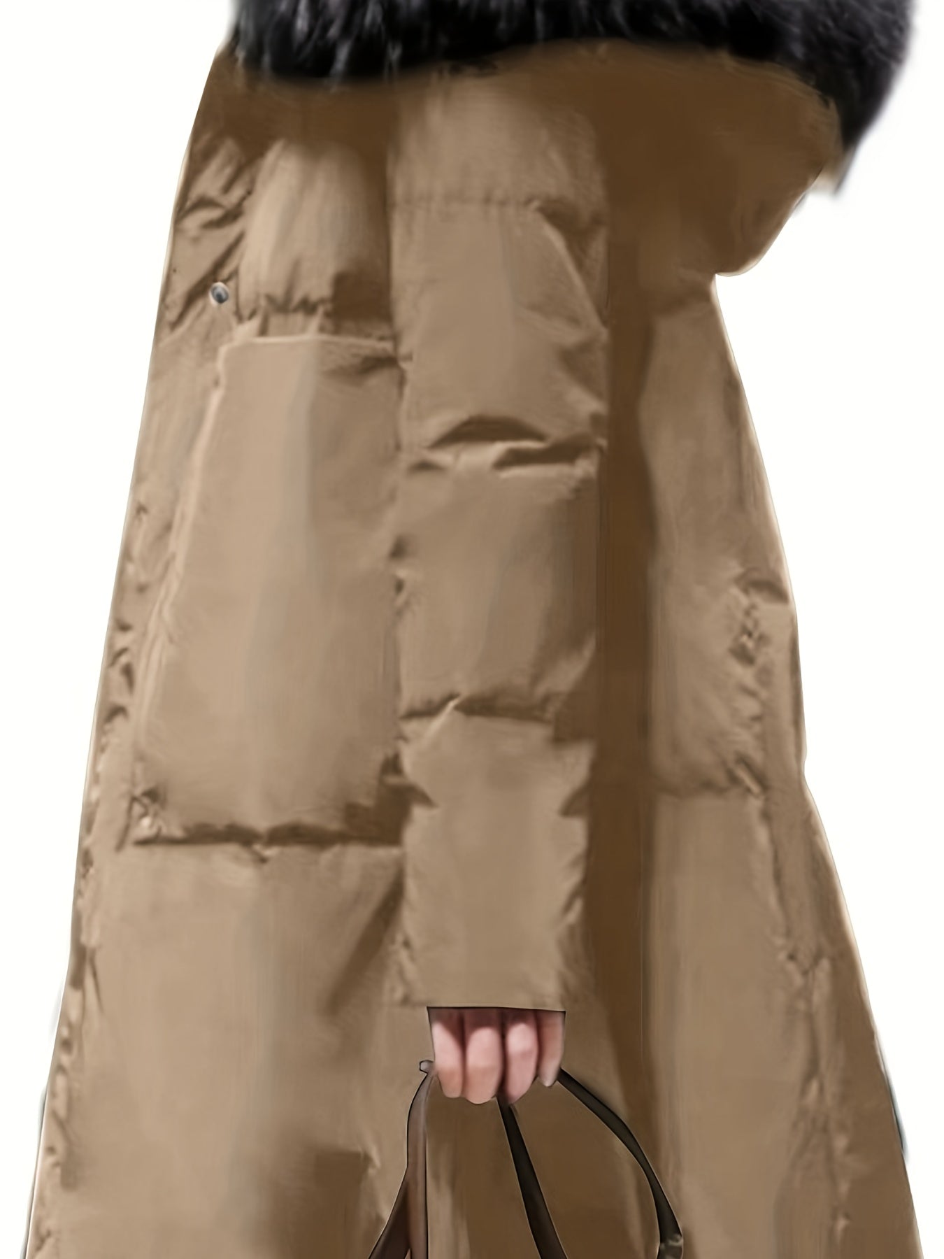 Winter Long Coat with Hood Faux Fur Trim Solid Color Polyester Casual Warm Outerwear