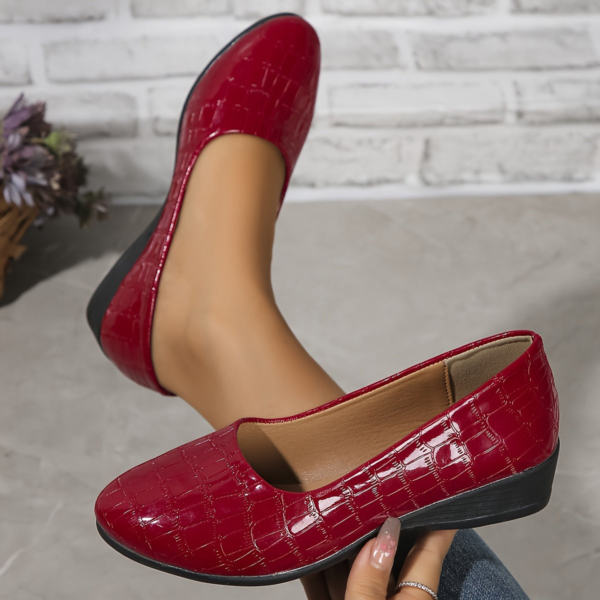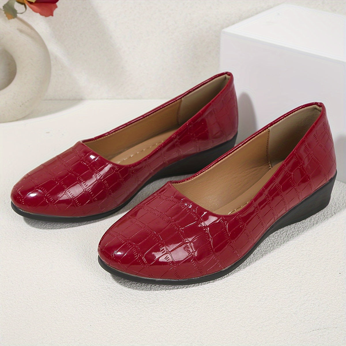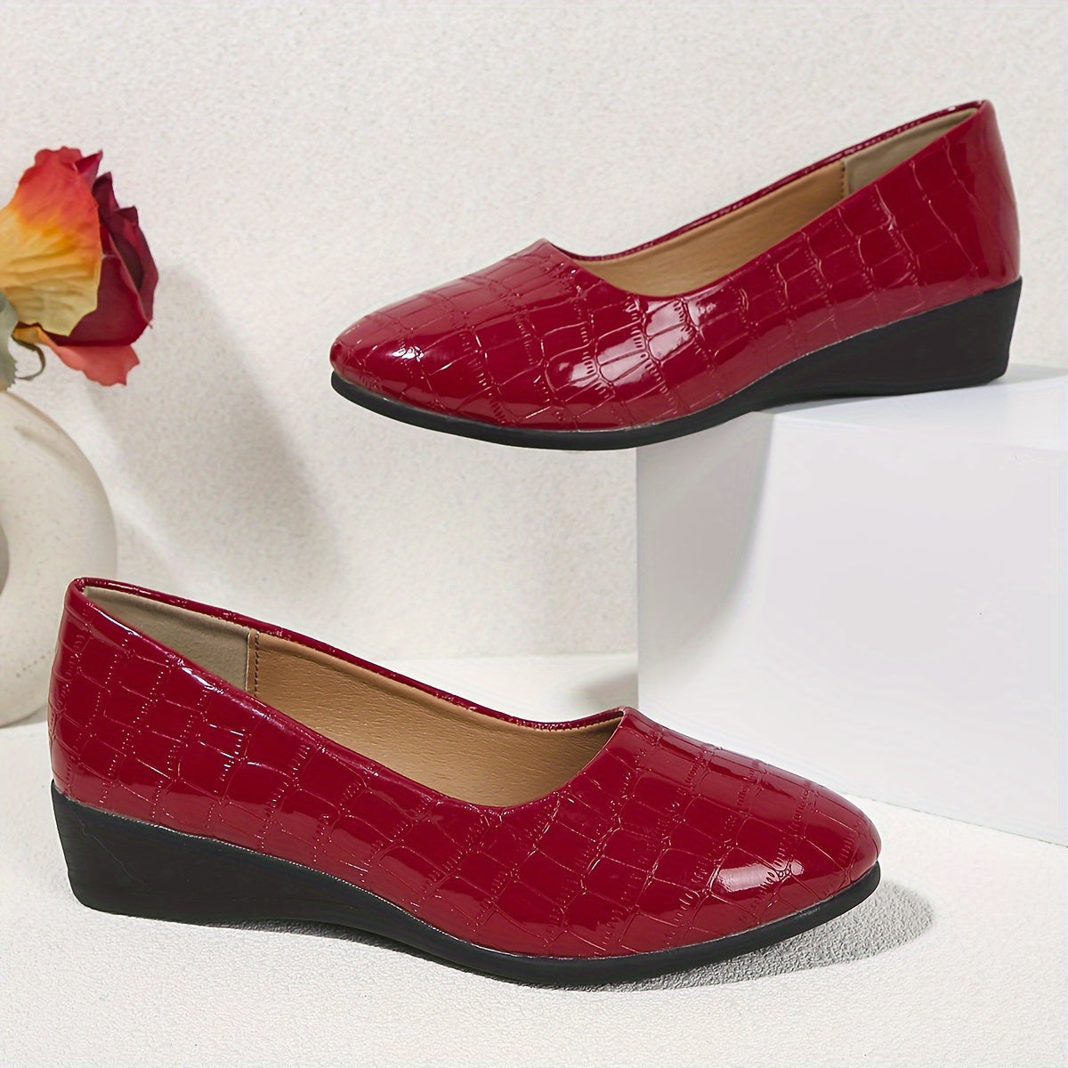 Women's Beige Crocodile-Embossed Wedge Heels Slip-On Comfort Shoes
