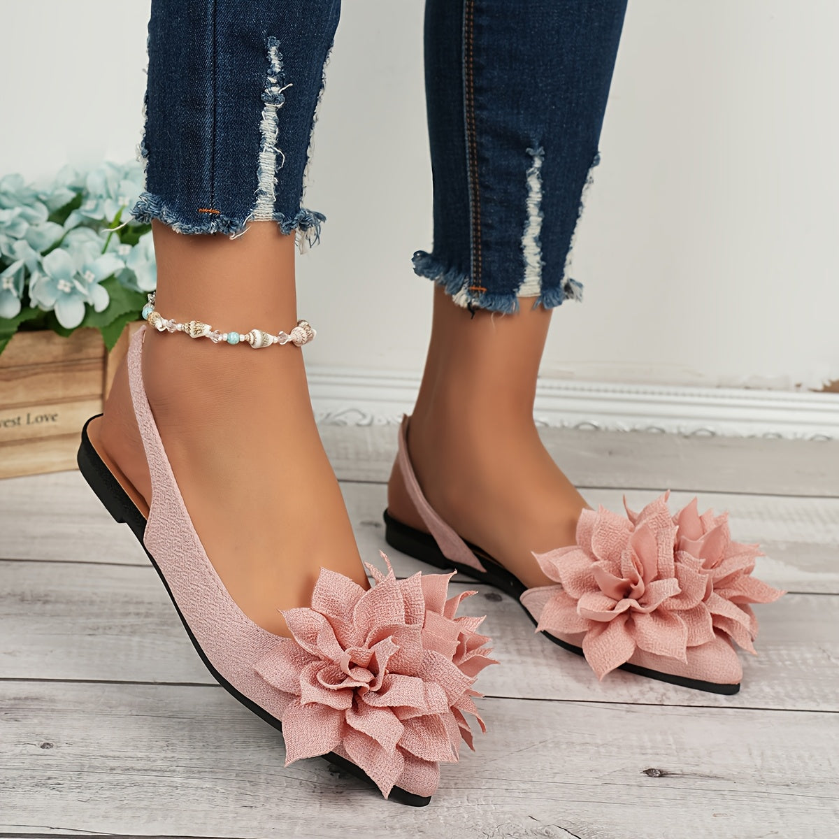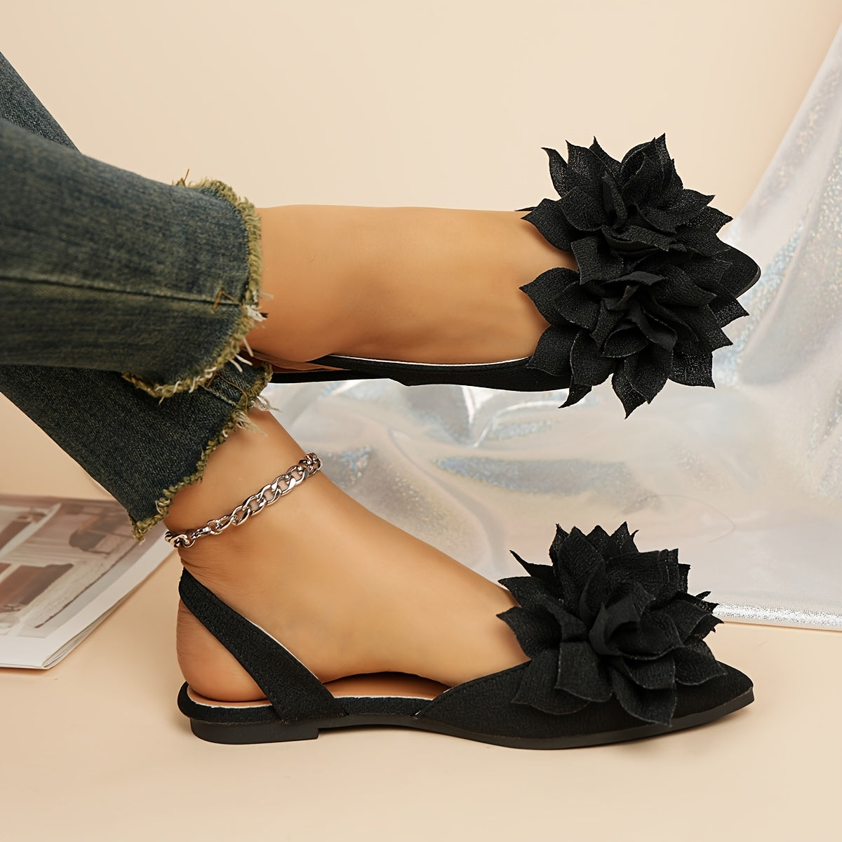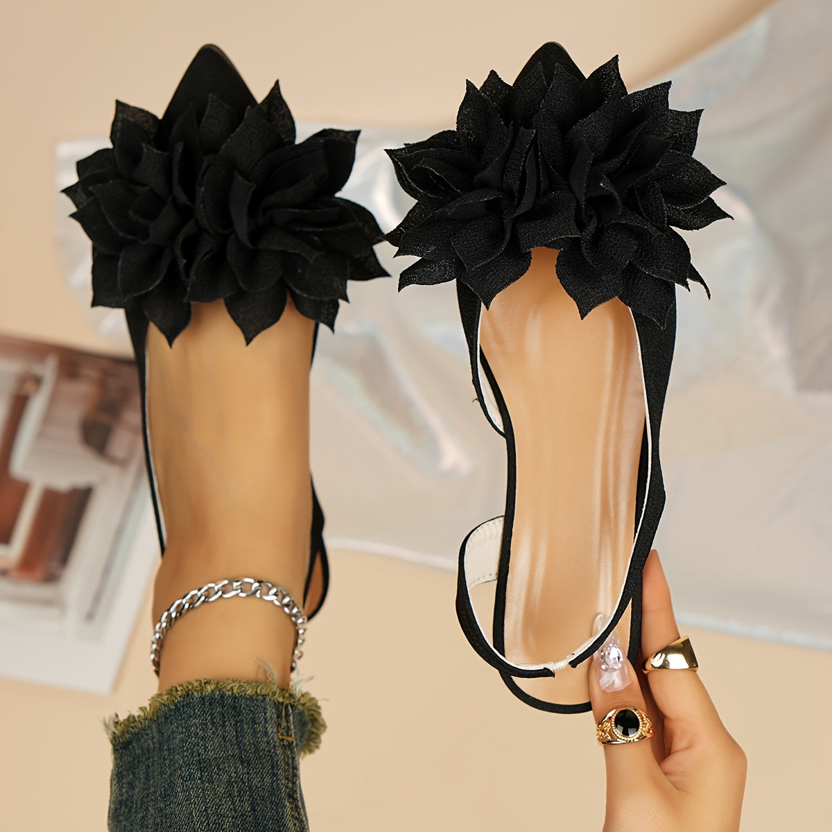 Women's Black Fabric Flat Sandals with Double Flower Embellishment