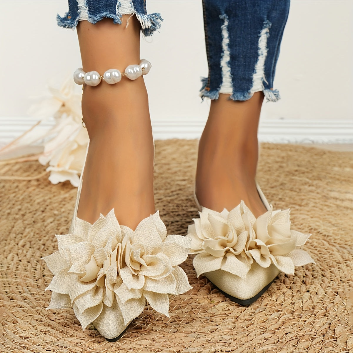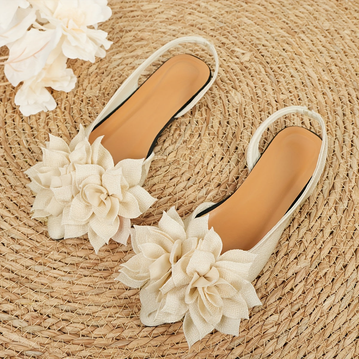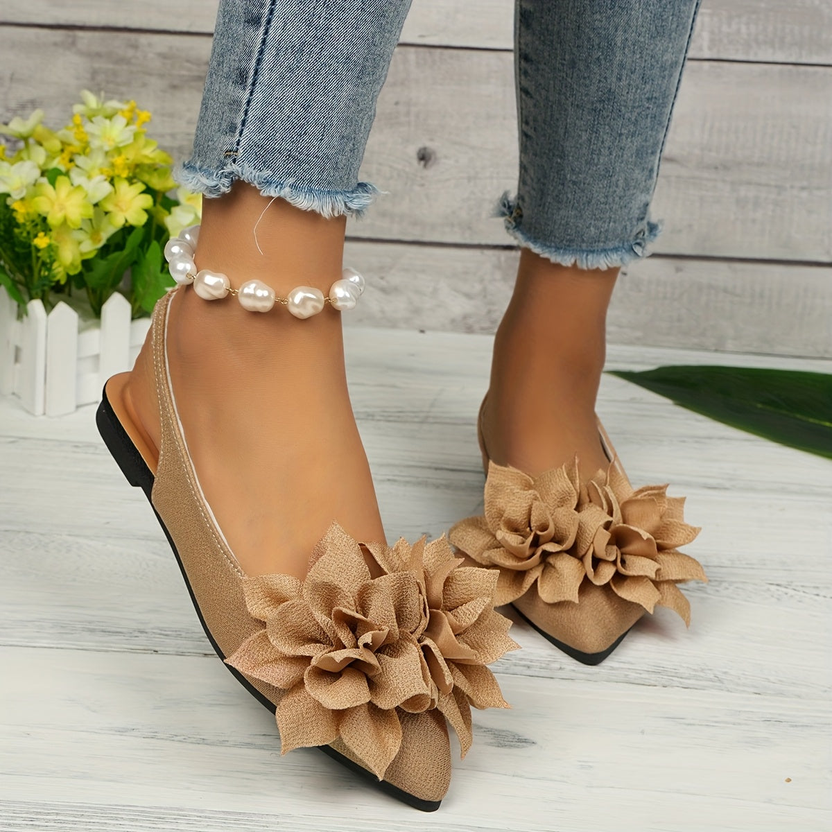 Women's Black Fabric Flat Sandals with Double Flower Embellishment