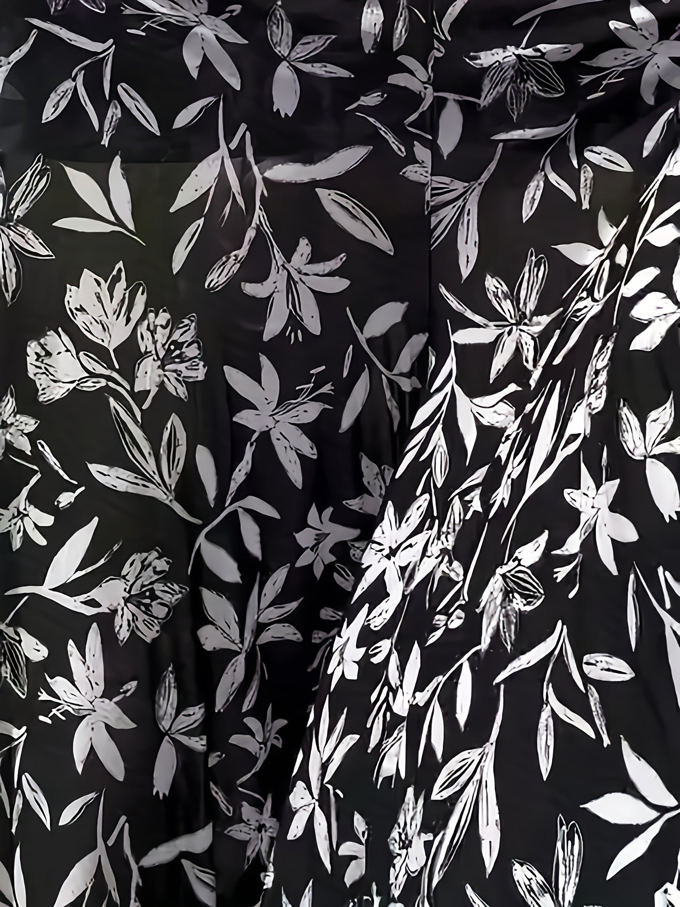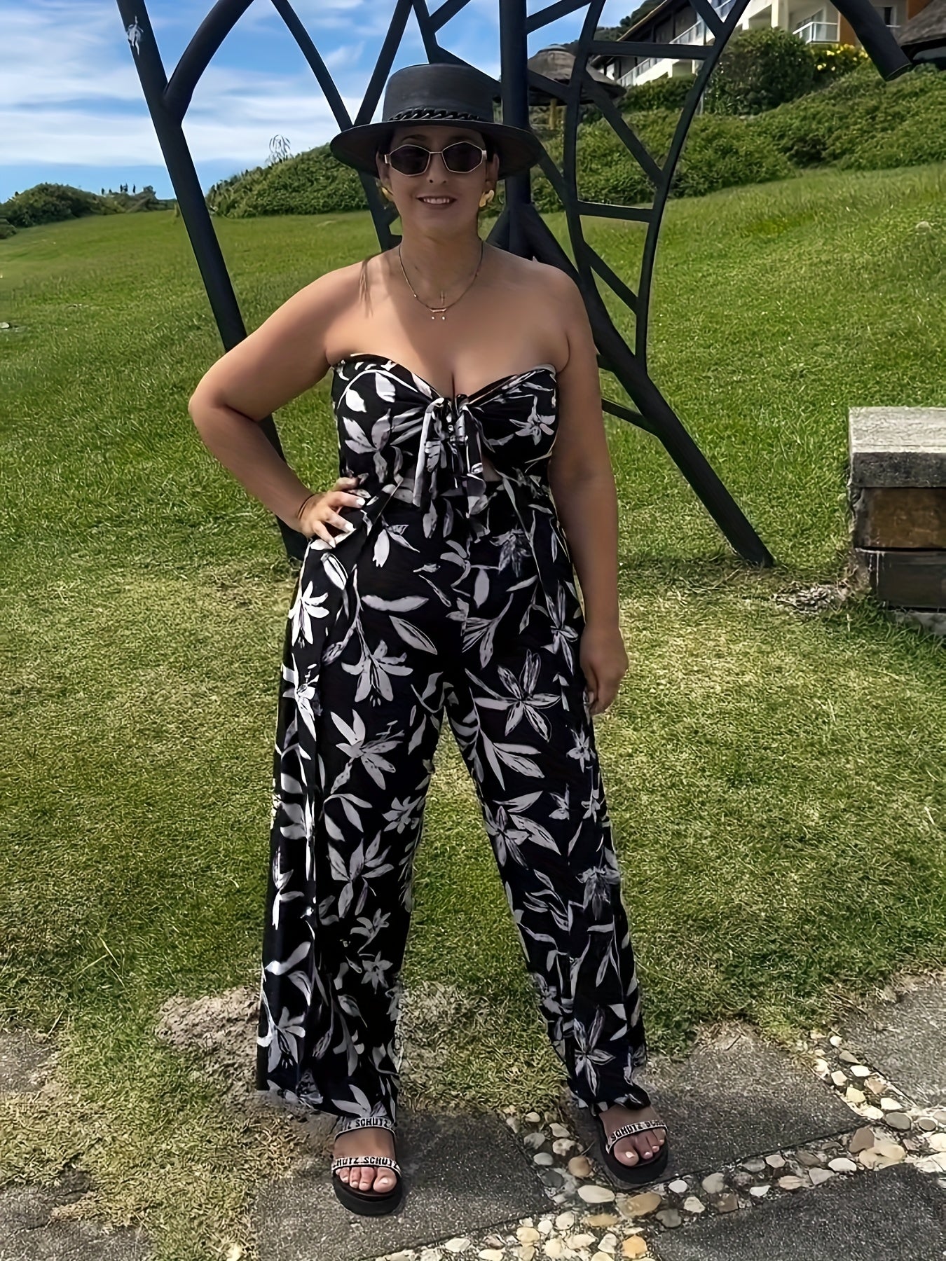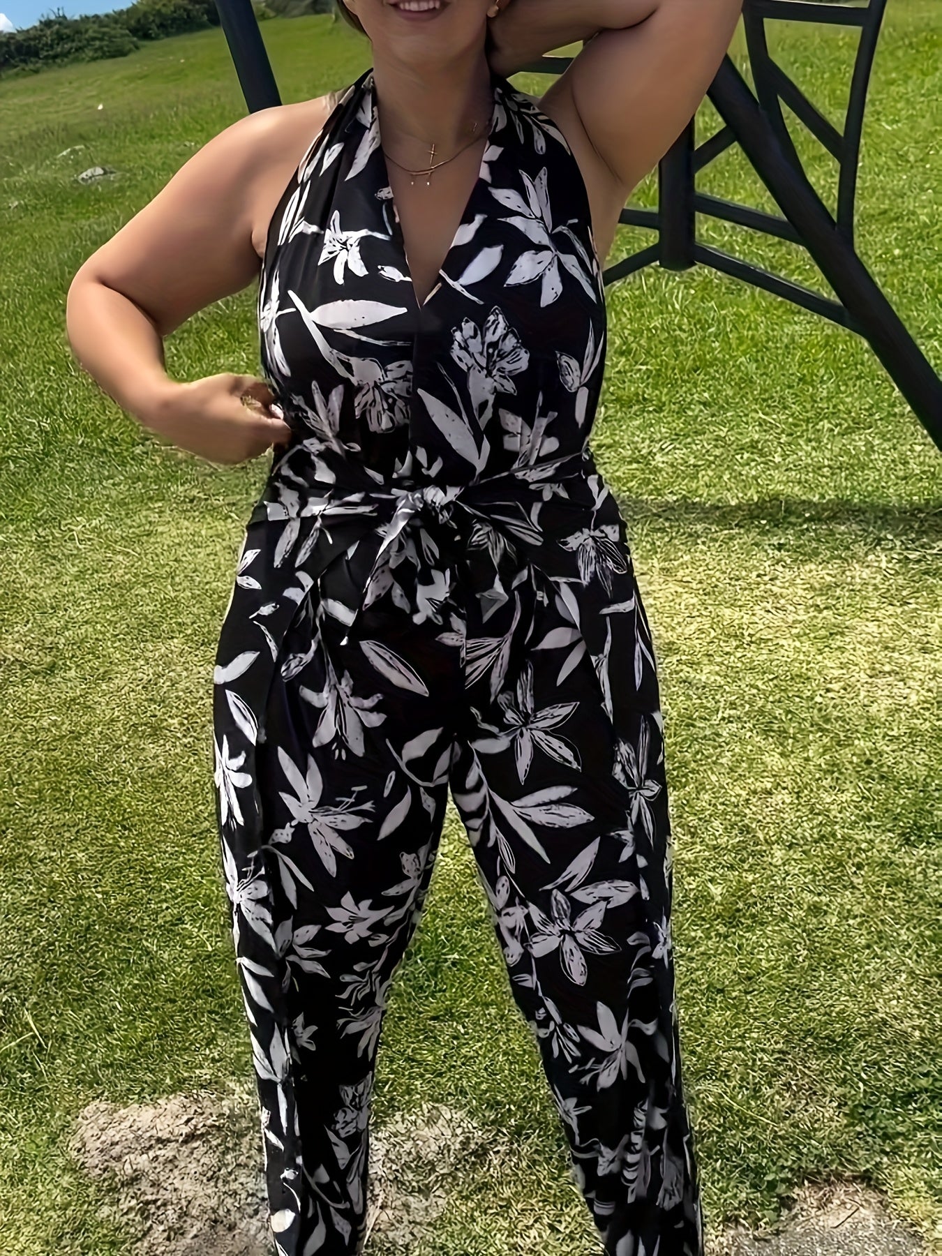 Women's Black Floral Print Jumpsuit with Belt Loose Fit Wide Leg Culottes