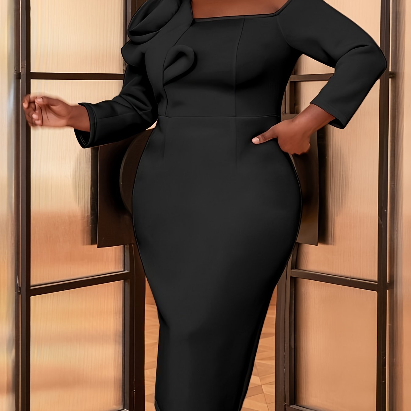 Women's Bodycon Party Dress Off Shoulder Long Sleeve 3D Flower Patchwork