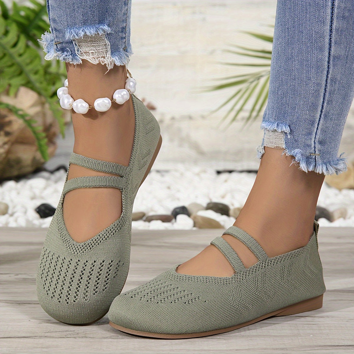 Women's Breathable Knit Slip-On Flats Casual Outdoor Shoes Round Toe Black Red Purple