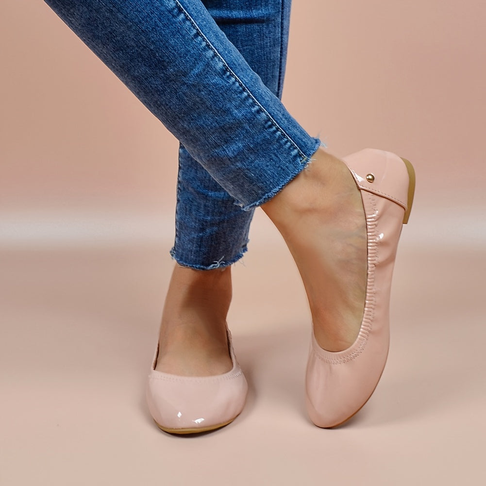 Women's Breathable Leather Ballet Flats - Round Toe Slip-On Comfortable Shoes