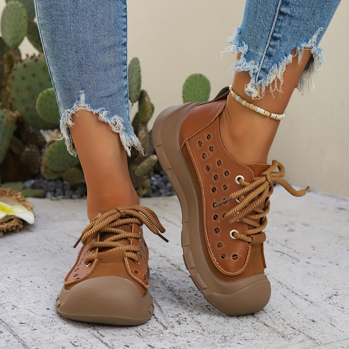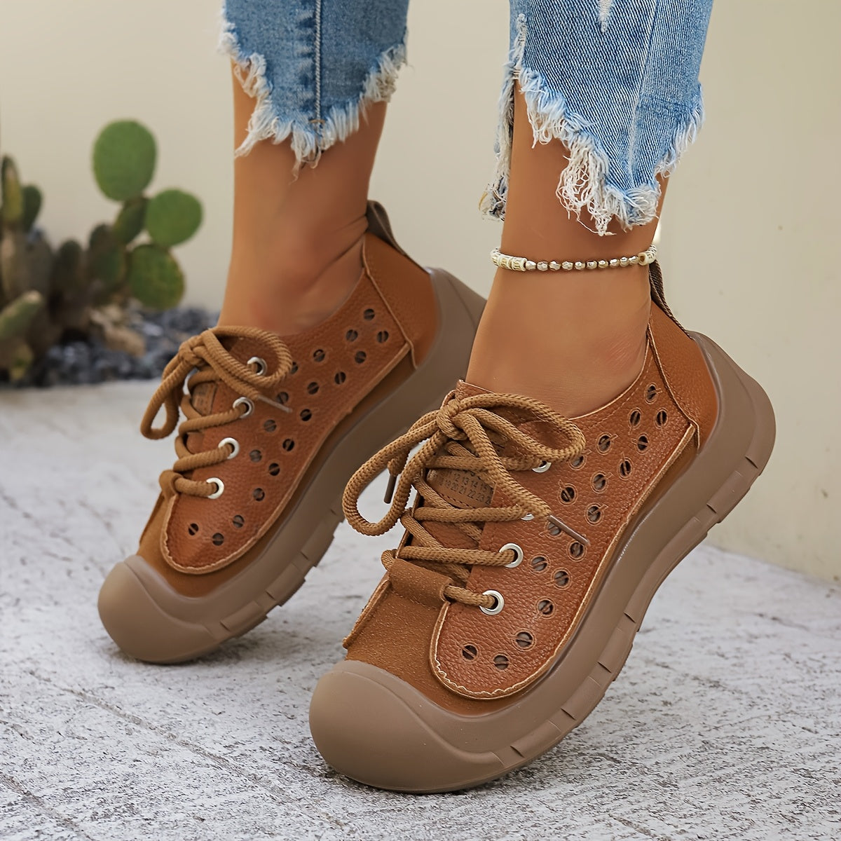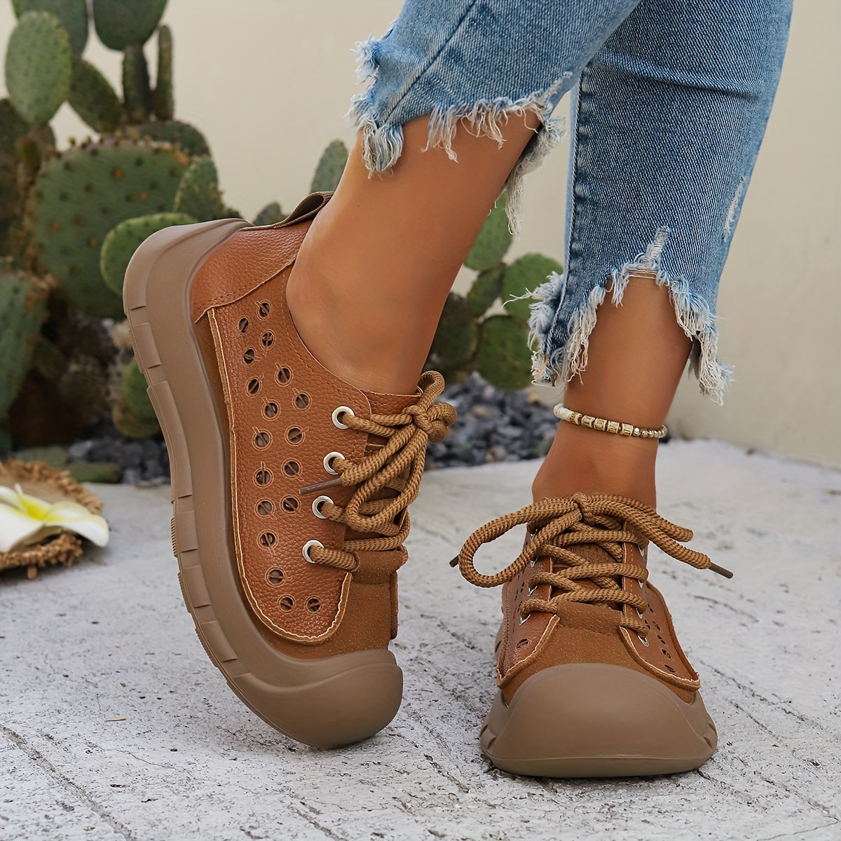 Women's Breathable Microfiber Slip-On Loafers with Cut-Out Design Brown Summer Casual Shoes