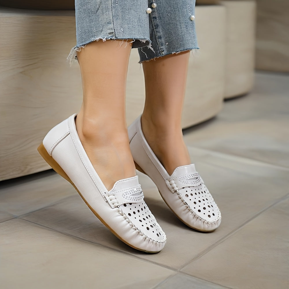Women's Breathable Perforated Slip-On Loafers White Synthetic Casual Shoes