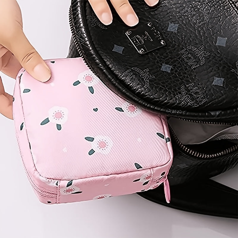 Women's Cartoon Printed Sanitary Napkin Organizer Bag with Zipper Multifunctional Travel Pouch