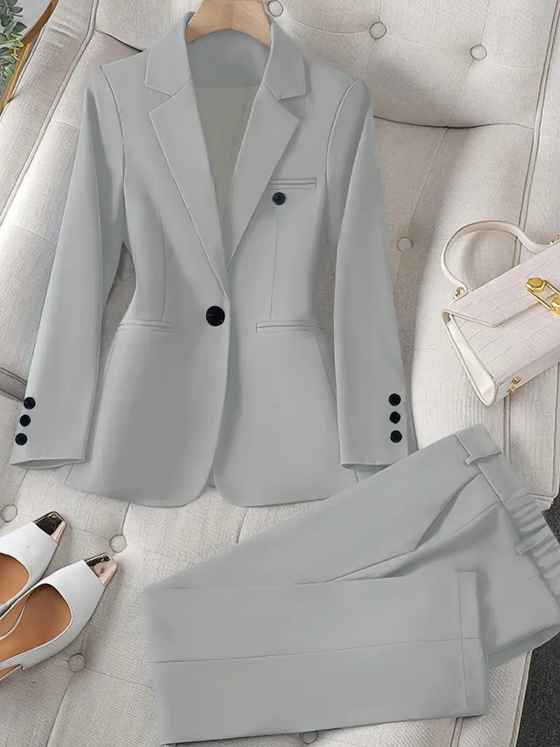 Women's Black 2-Piece Suit Set Long Sleeve Blazer and Pants Woven Polyester