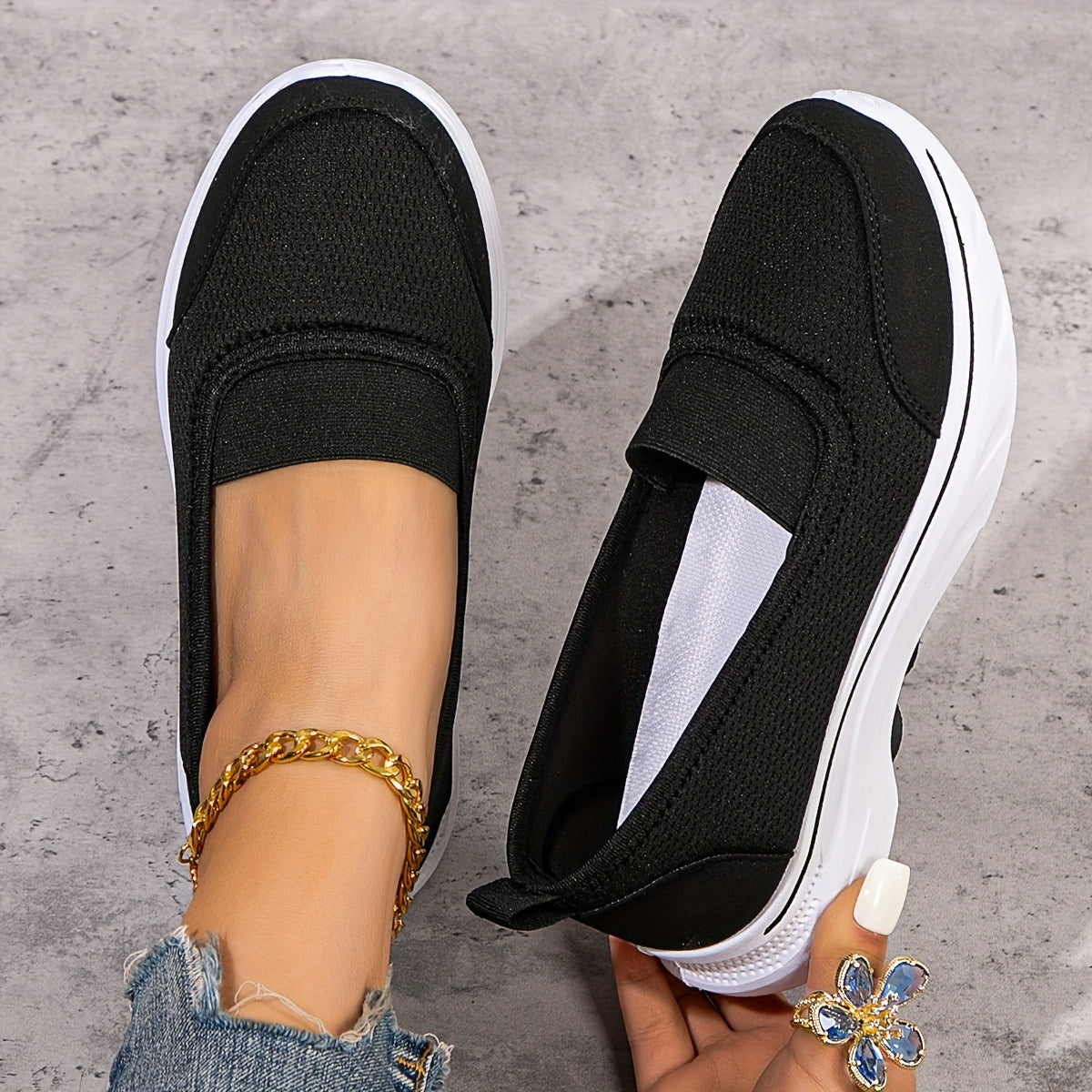 Women's Casual Mesh Slip-On Sneakers, Solid Color, Non-Slip Soft PVC Sole