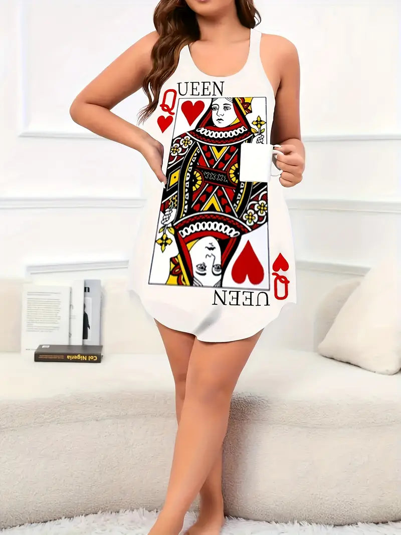 Women's Casual Poker Print Nightgown with Round Neck and Racer Back Tank Style