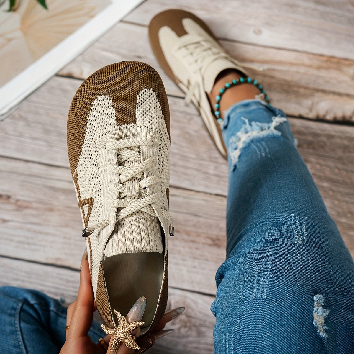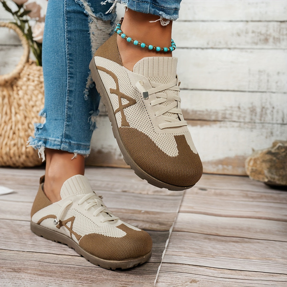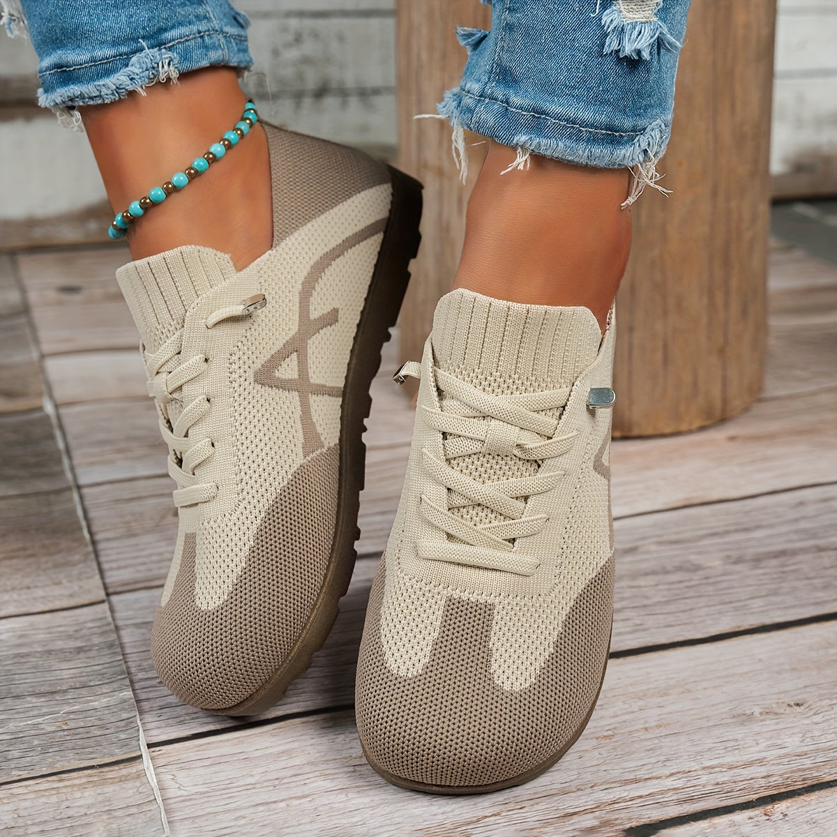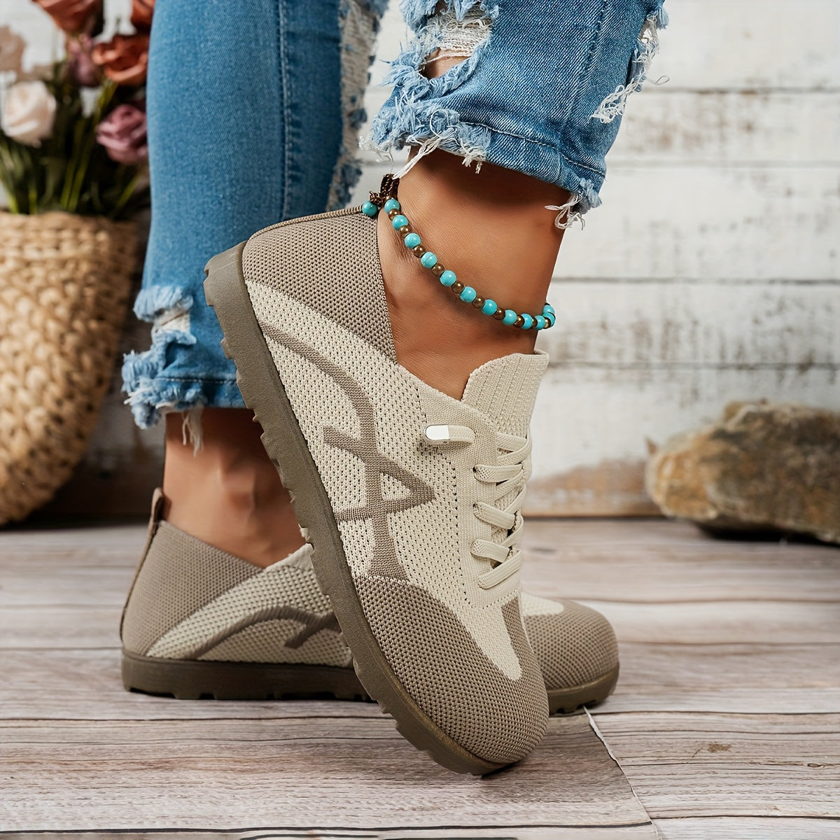 Women's Casual Slip-On Flats Knit Fabric with PVC Outsole Black Beige
