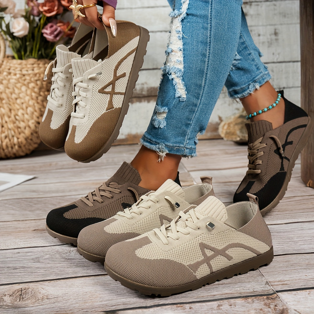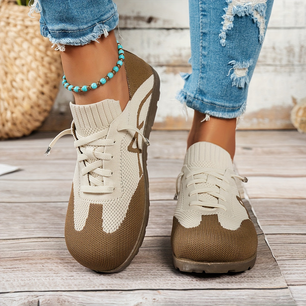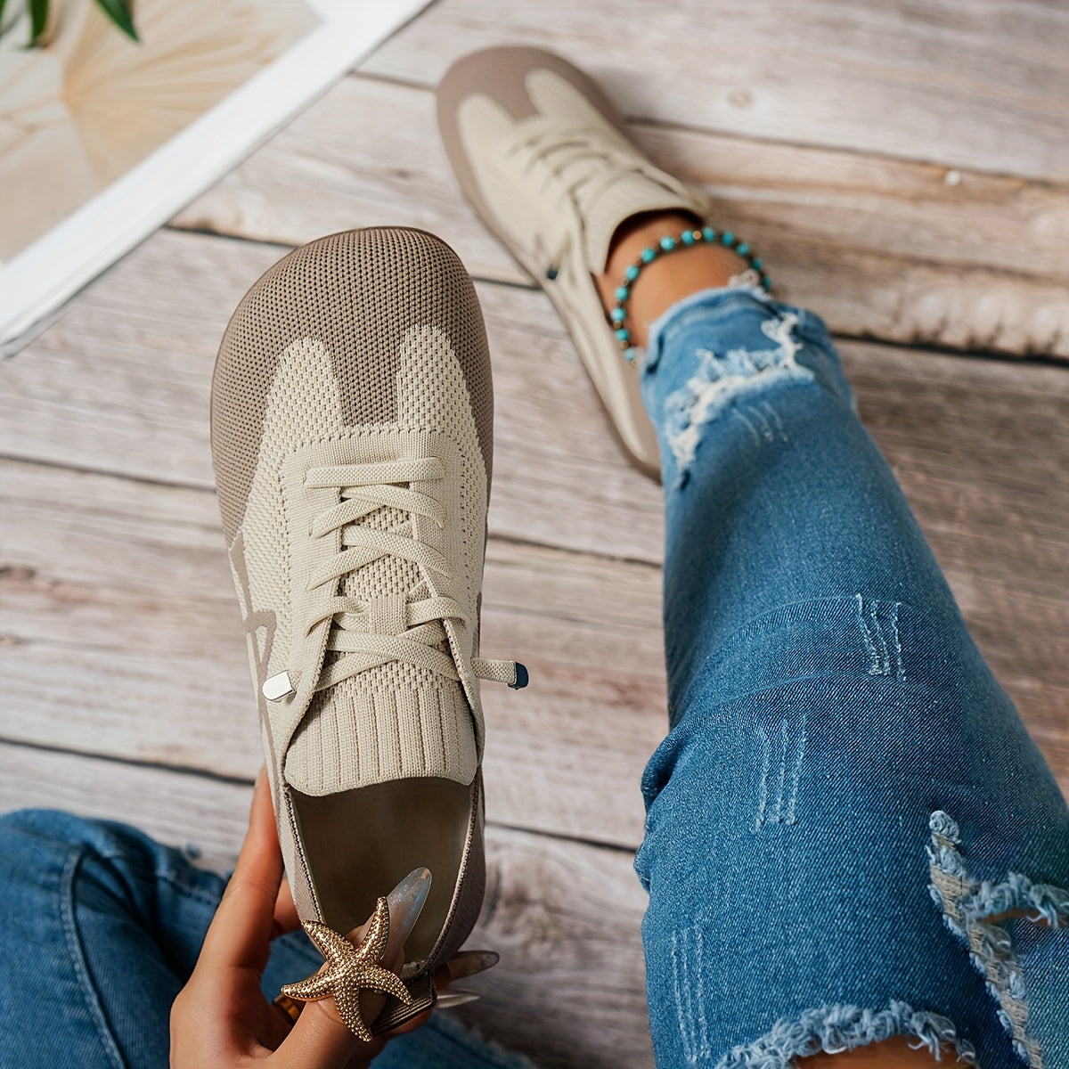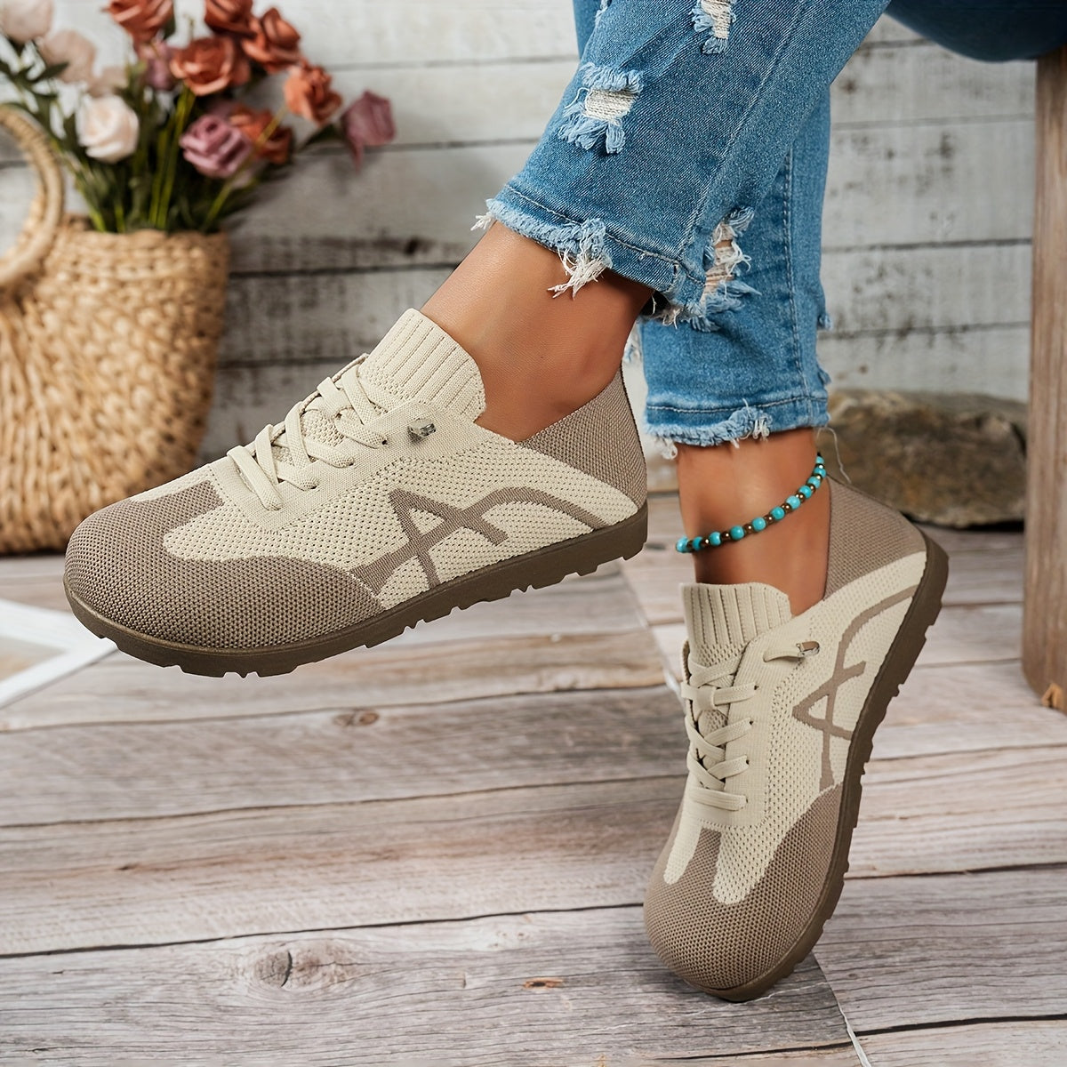 Women's Casual Slip-On Flats Knit Fabric with PVC Outsole Black Beige