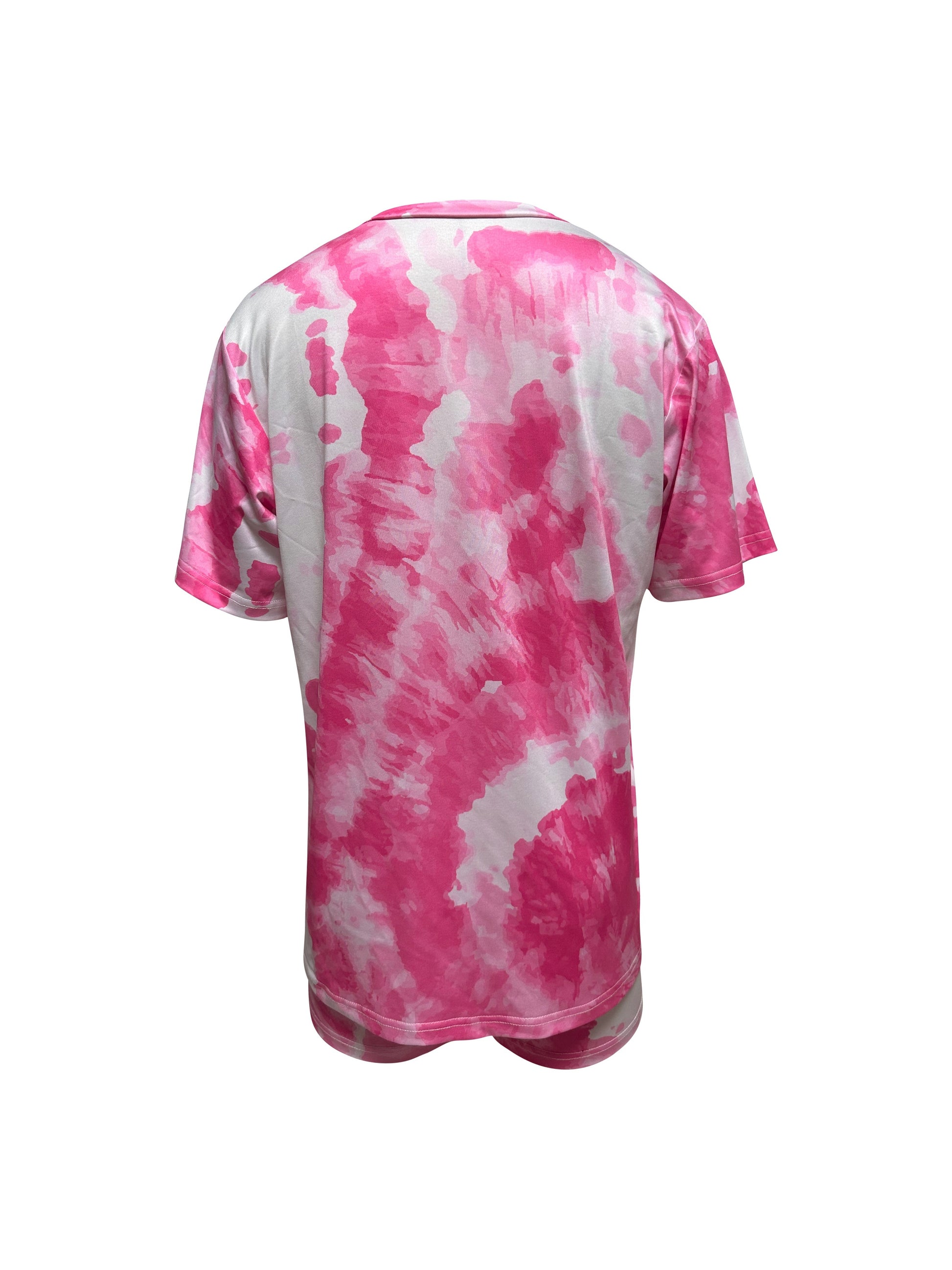 Women's Tie Dye Lounge Set Short Sleeve Crew Neck Top and Shorts for Sleepwear and Loungewear