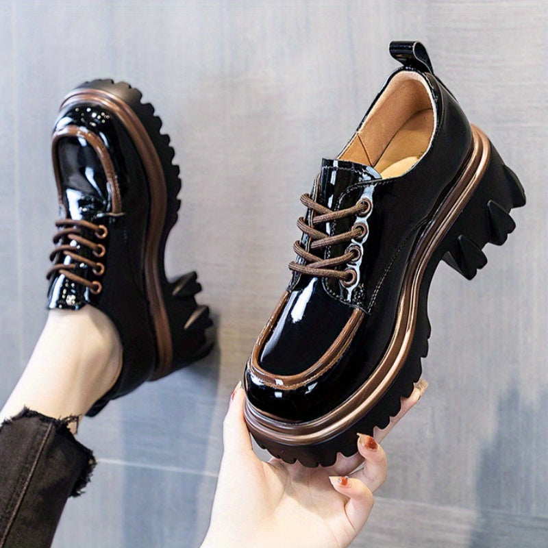 Women's Chunky Heel Loafers White Brown Casual Shoes Thick Sole