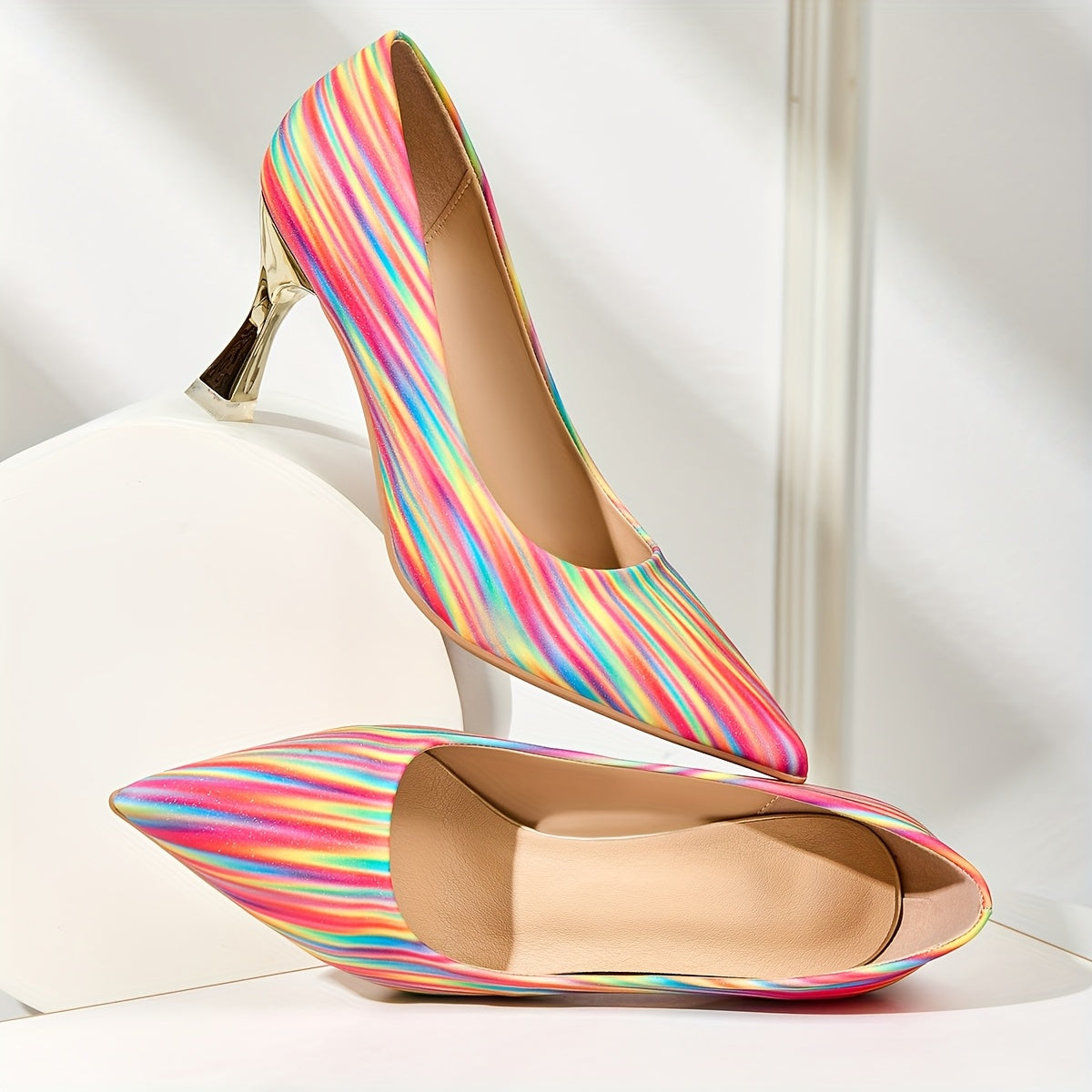 Women's Colorful Striped Pointed Toe High Heels Slip-On Party Pumps