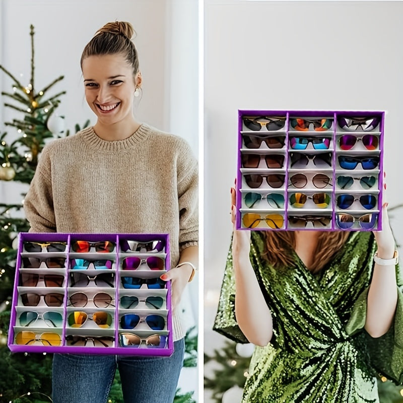 Women's Jewelry Storage Box with 18 Slots for Eyeglasses Artificial Leather Stand Purple Red Blue-Grey
