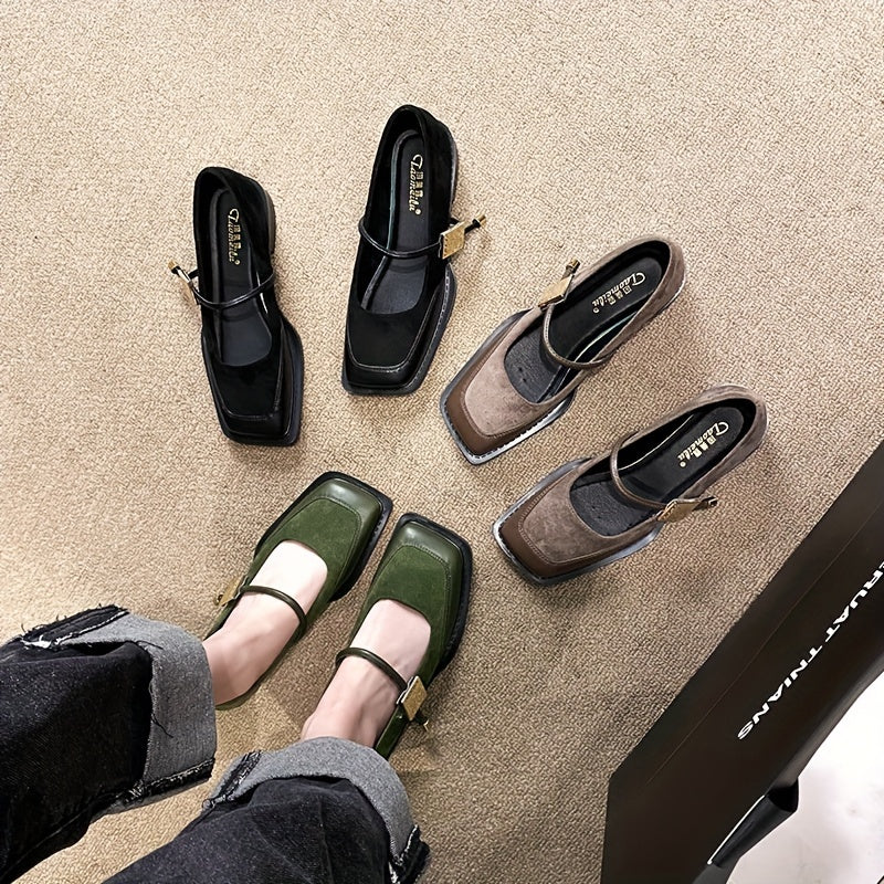 Women’s Faux Leather Mary Jane Flats Square Toe Lace-Up Shoes for Office and Casual Wear