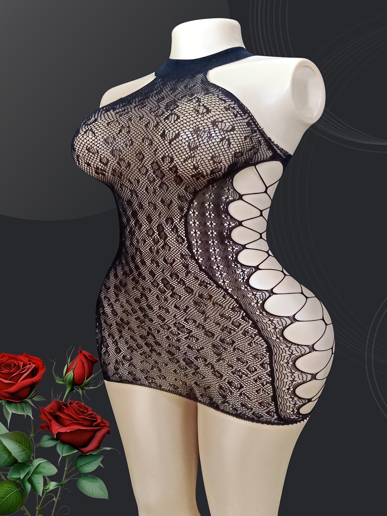 Women's Fishnet Mesh Bodycon Dress Plus Size Hollow Out Leopard Print