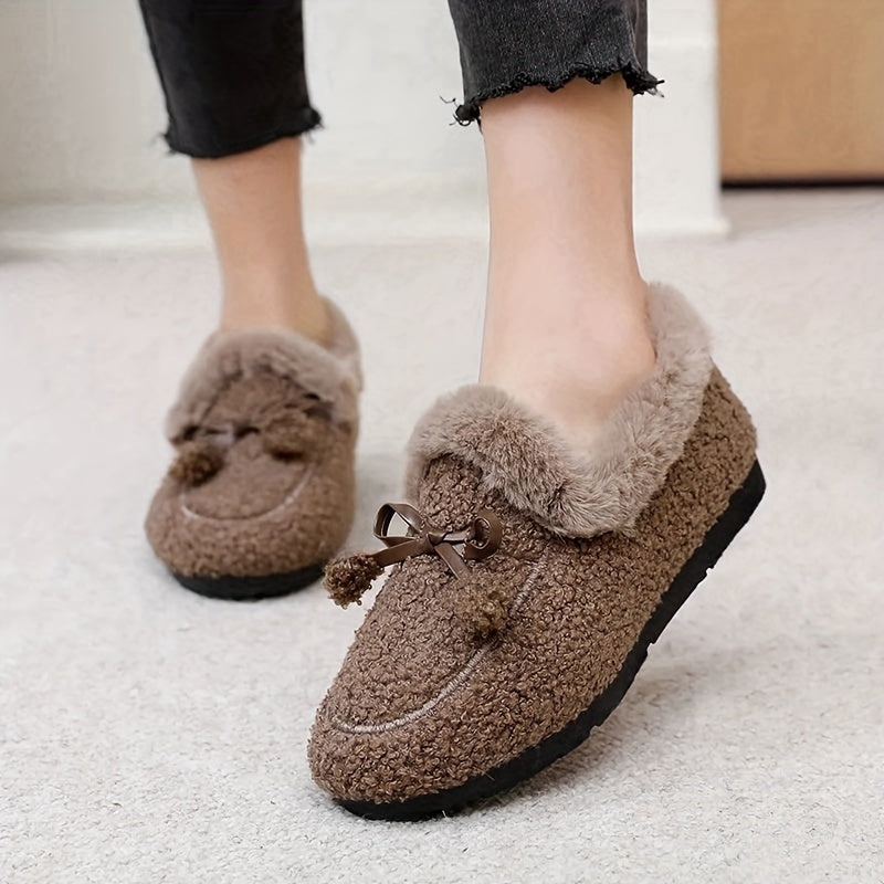 Women's Fleece-Lined Loafers Slip-Ons with Bow, All-Season Comfort