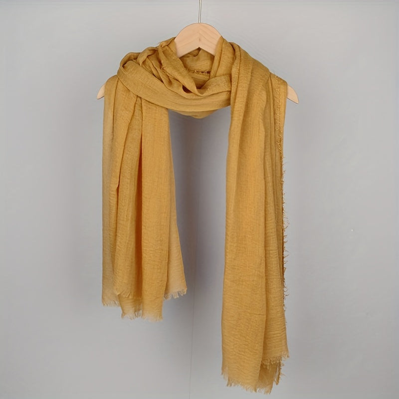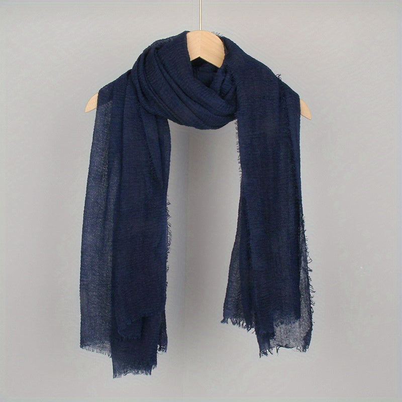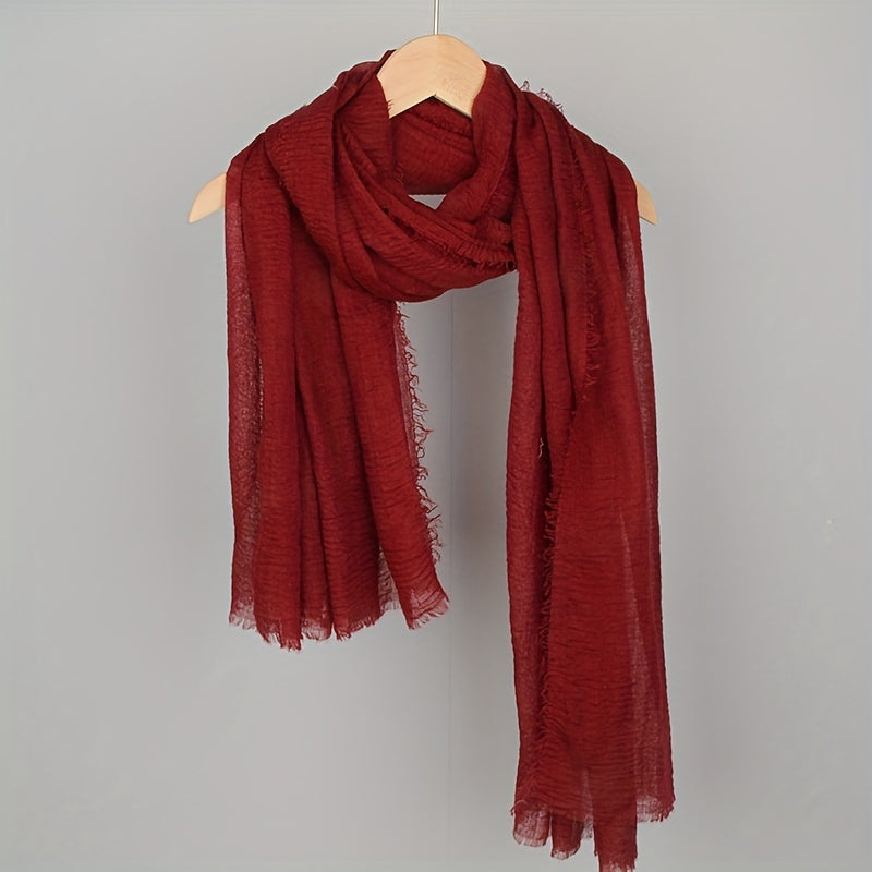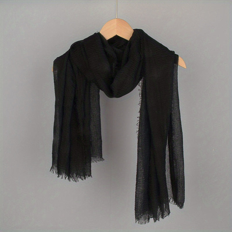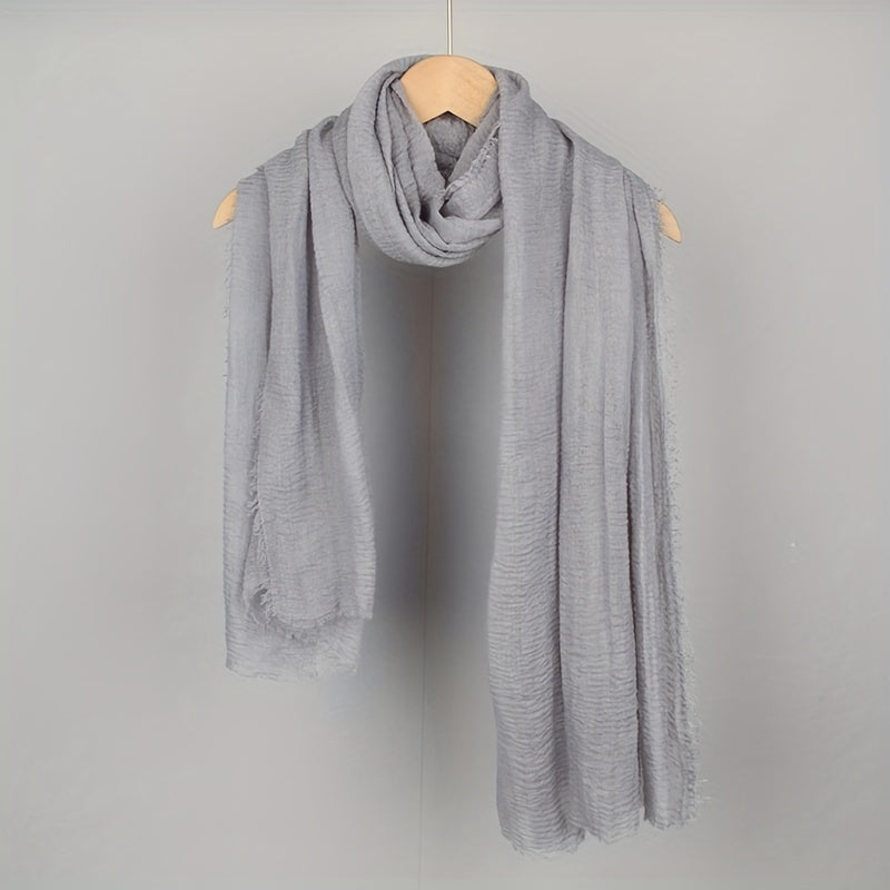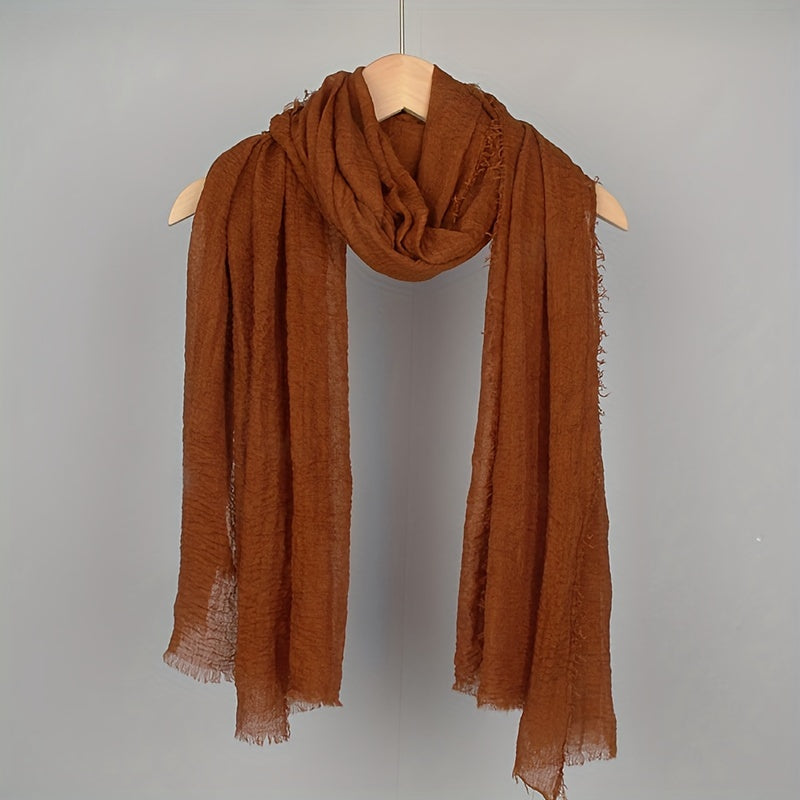 Women's Solid Color Frayed Edge Casual Hijab Scarf Crinkle Turban Headwrap