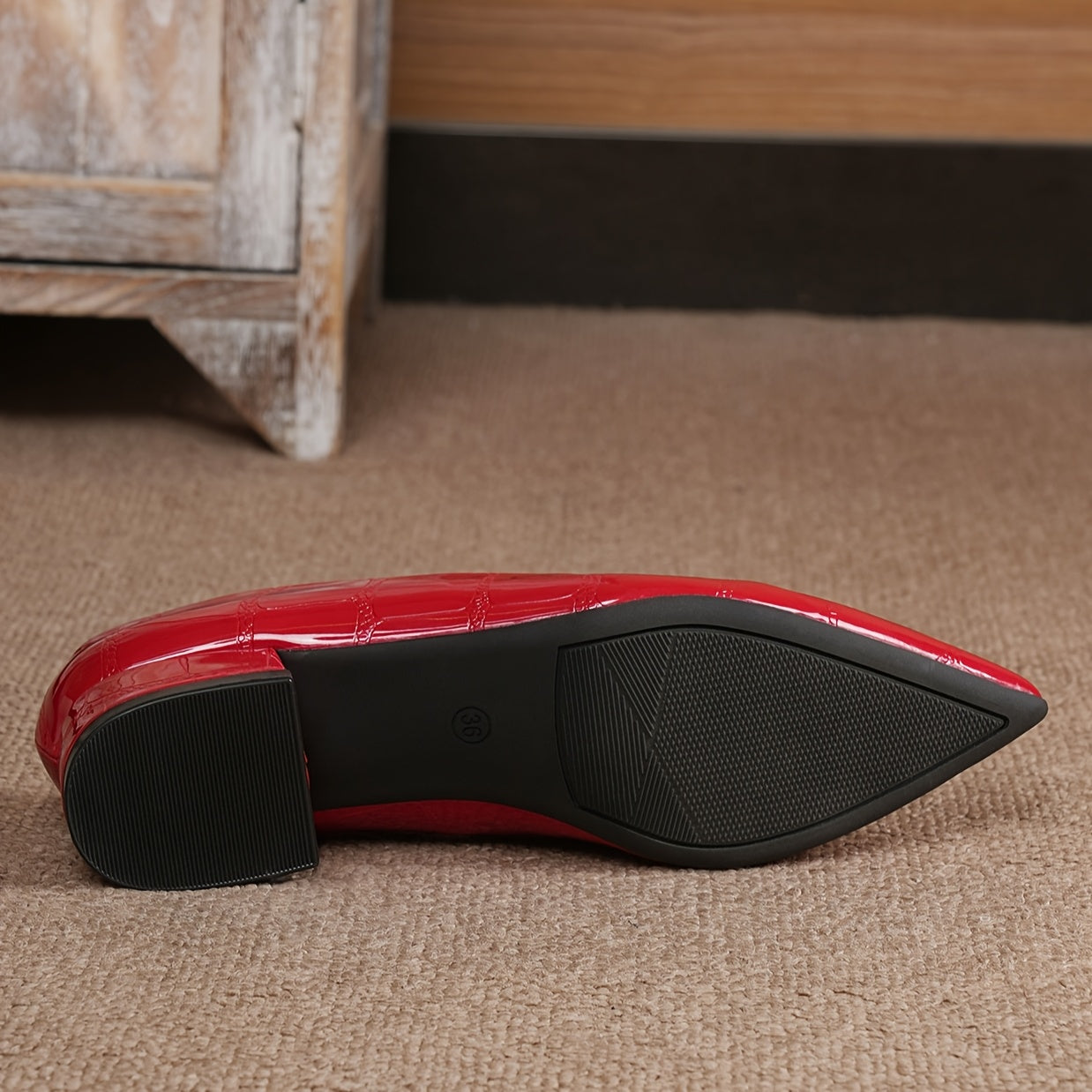 Women's Glossy Red Pointed Toe Block Heel Pumps Dress Shoes for Weddings and Parties