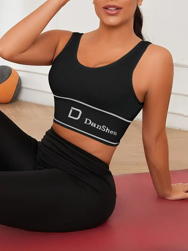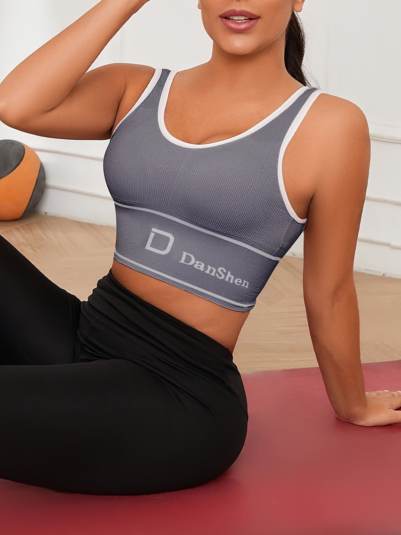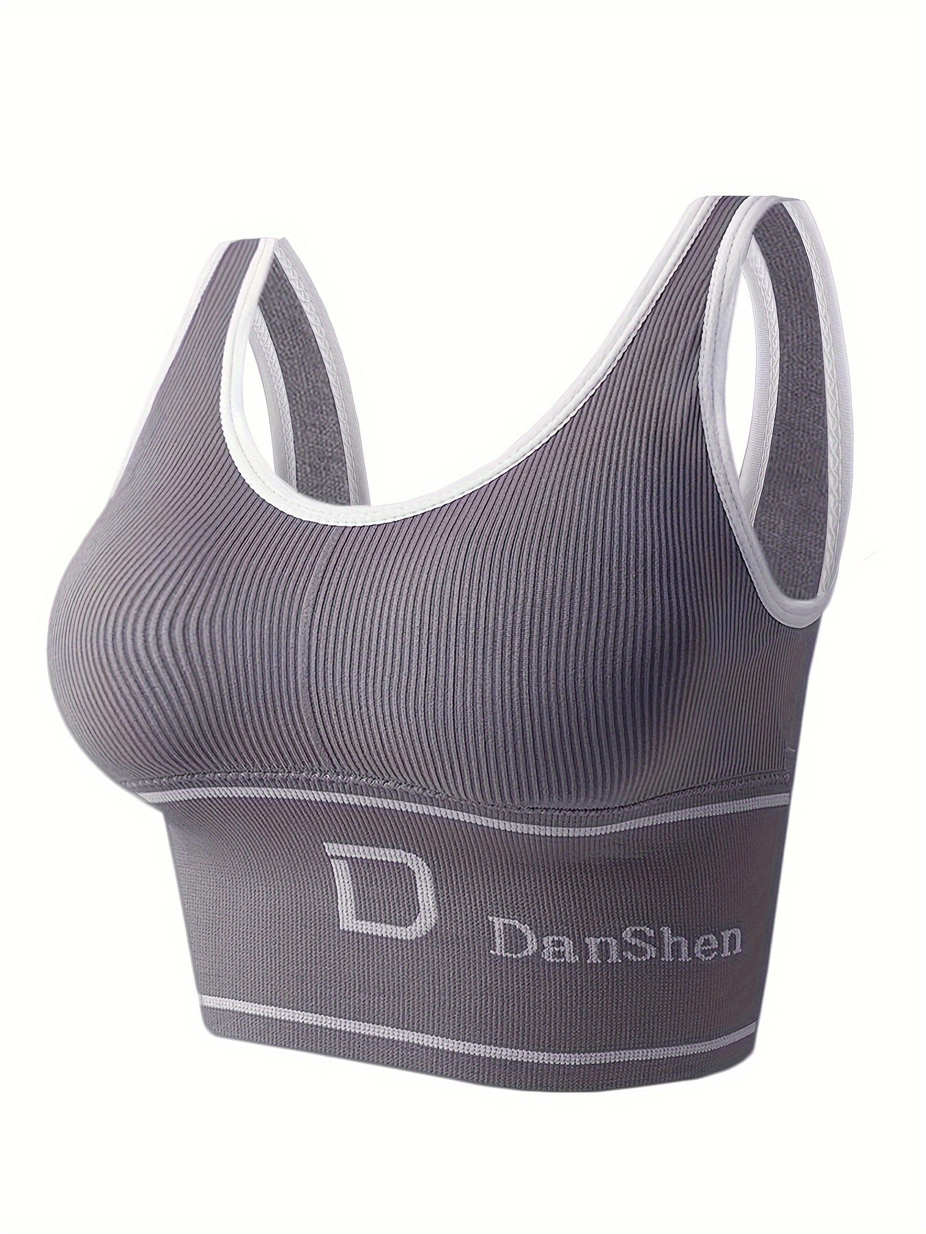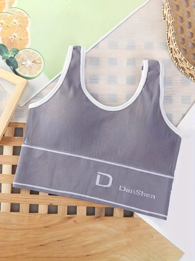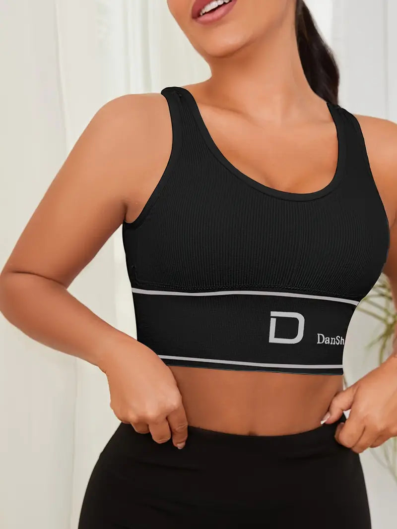 Women's High-Elasticity Ribbed Sports Bra Tank Top Olive Green Padded Wireless