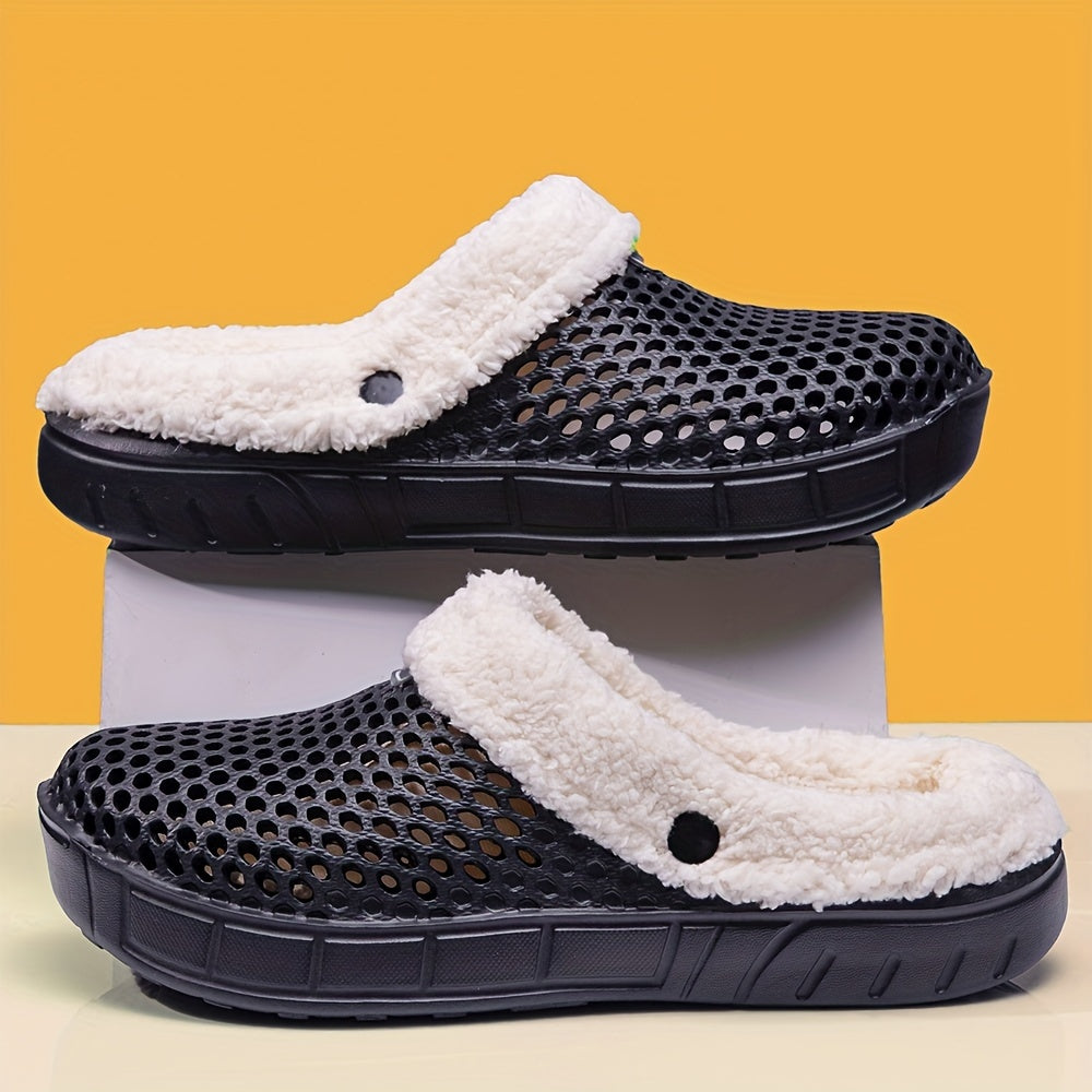 Women's Hollow Out Clogs Slip-On Plush Lined Warm Casual Shoes Plus Size