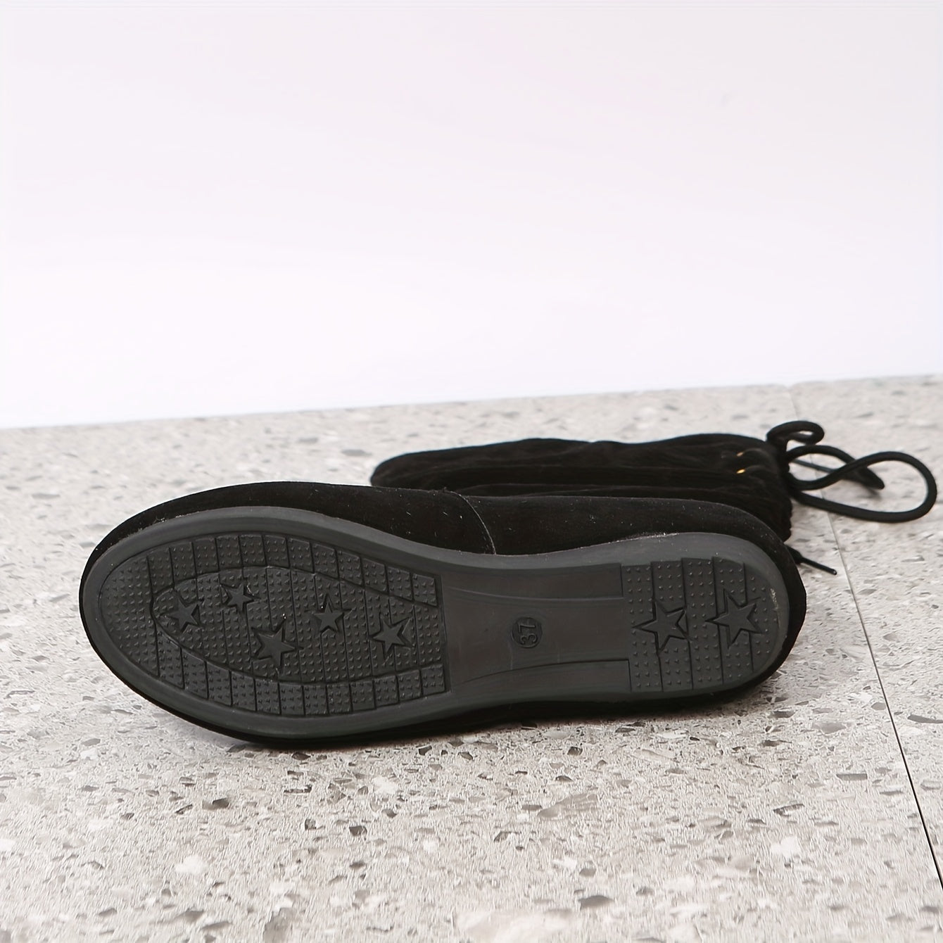 Women's Lace-Up Flat Boots with Round Toe Non-Slip Rubber Sole Solid Color