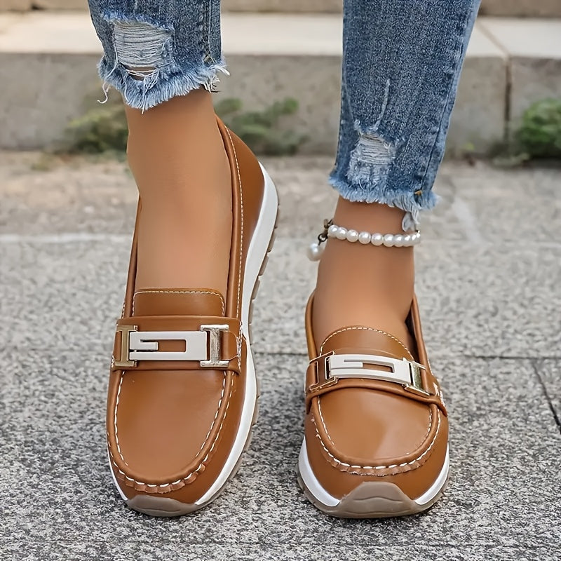 Women's Lightweight Slip-On Flats with Metallic Buckle Casual Shoes for Autumn