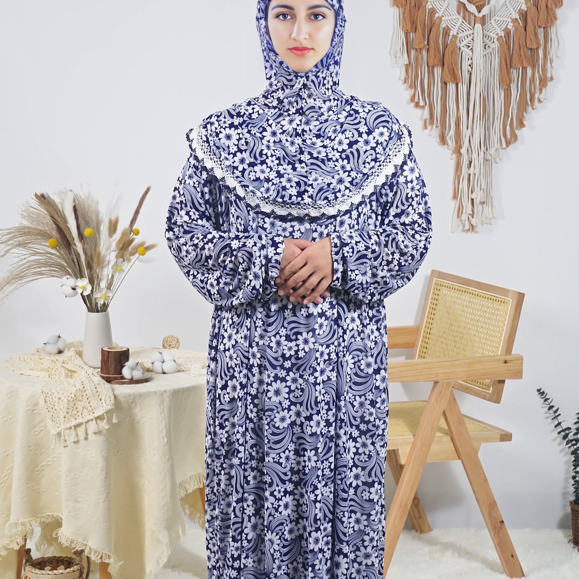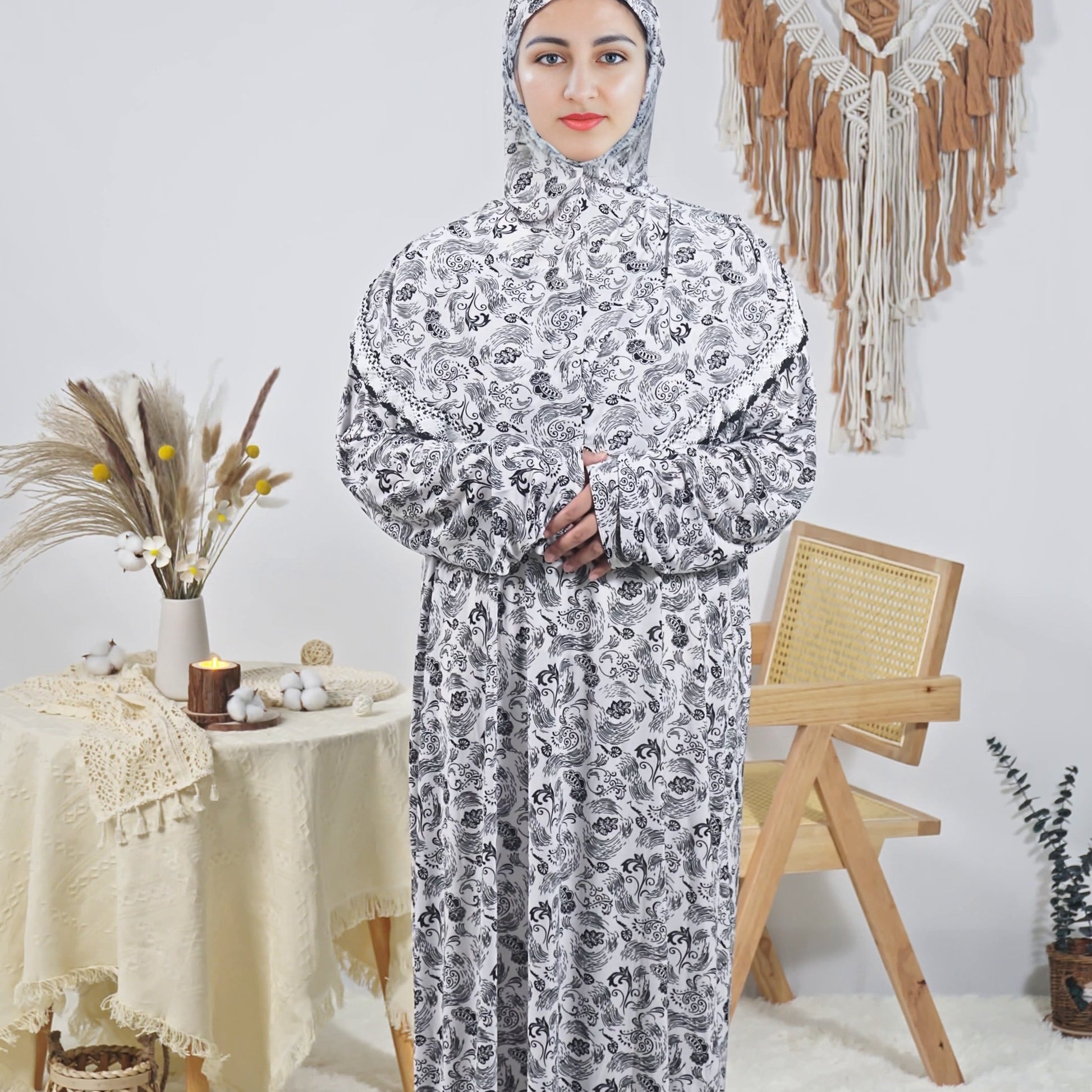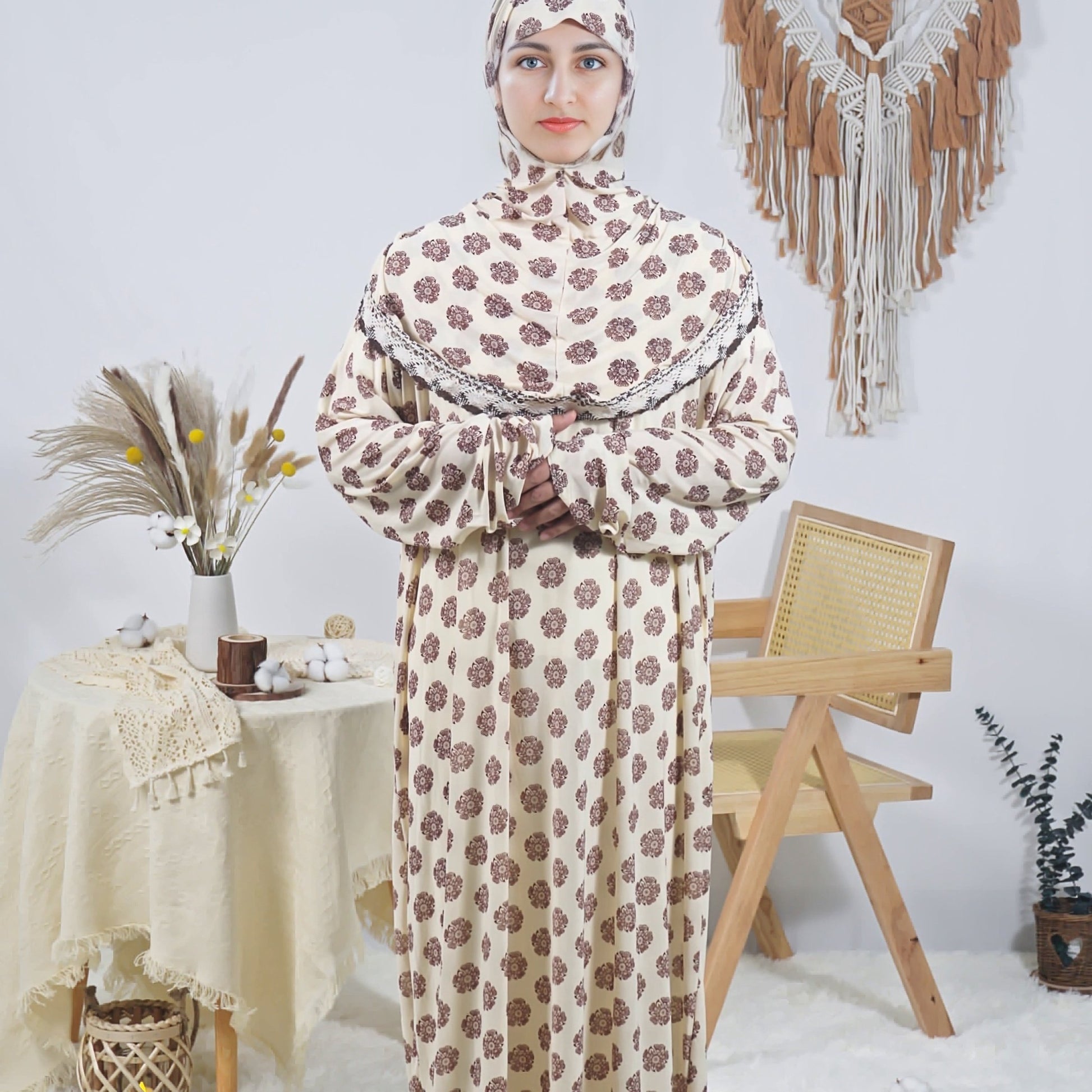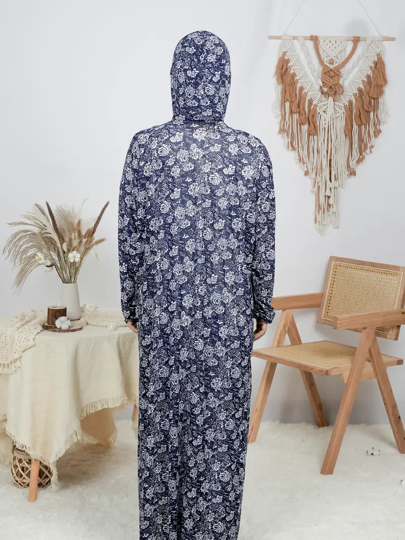 Women's Long Floral Print Loose Fit Robe Polyester Elastane Machine Washable for Ramadan