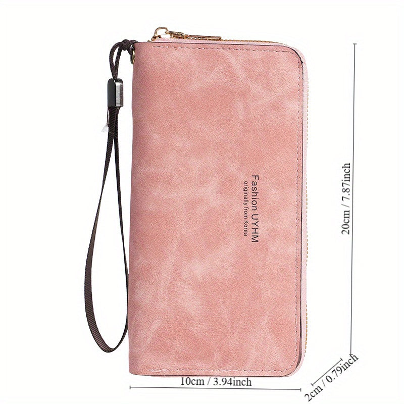 Women's Long Wallet with Card Holder Phone Pocket and Wrist Strap Made of PU Leather