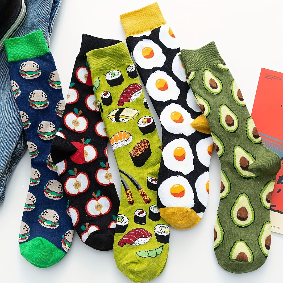 Women's Short Socks 5 Pairs Knit Fabric Fried Egg Burger Pattern Casual