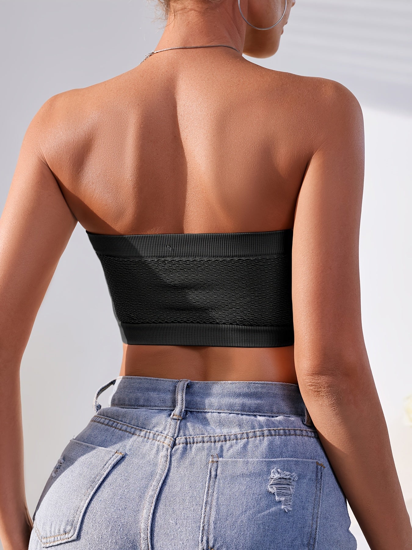 Women's Mesh Bandeau Tube Bra 3-Pack Non-Slip Seamless Plus Size